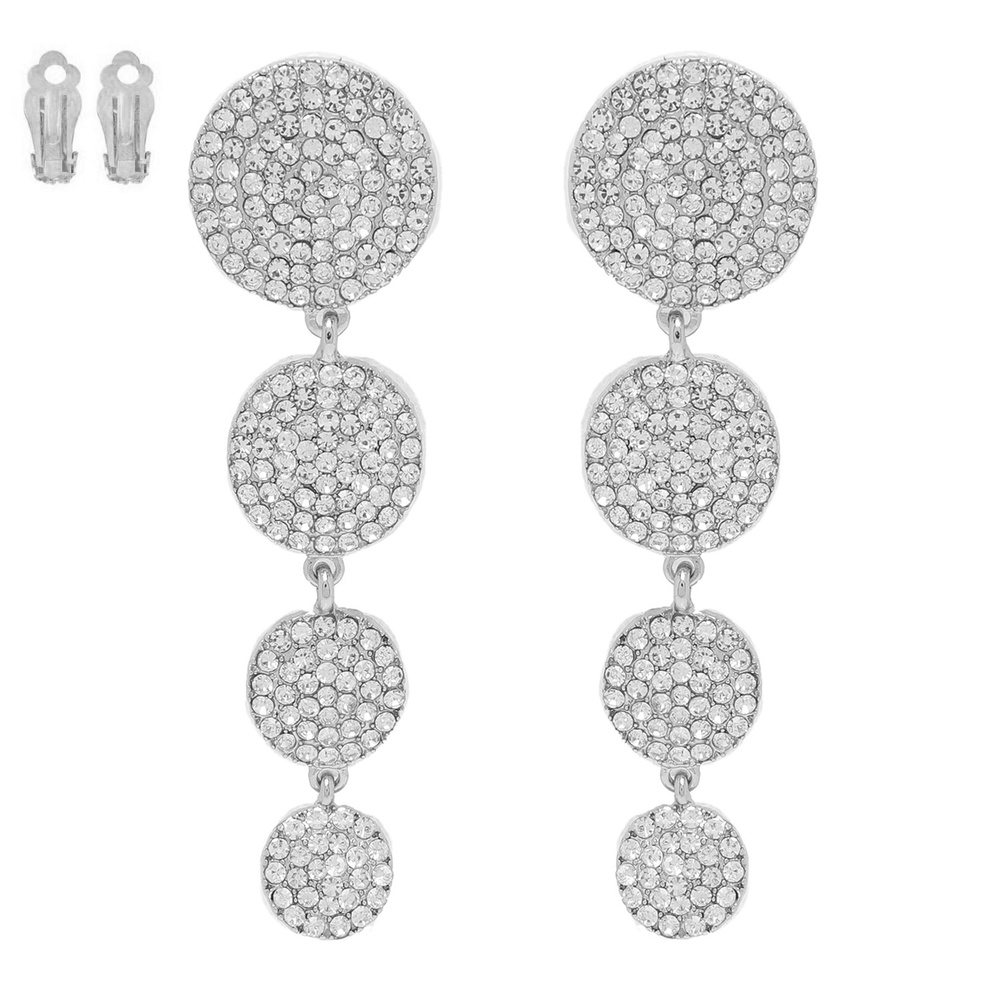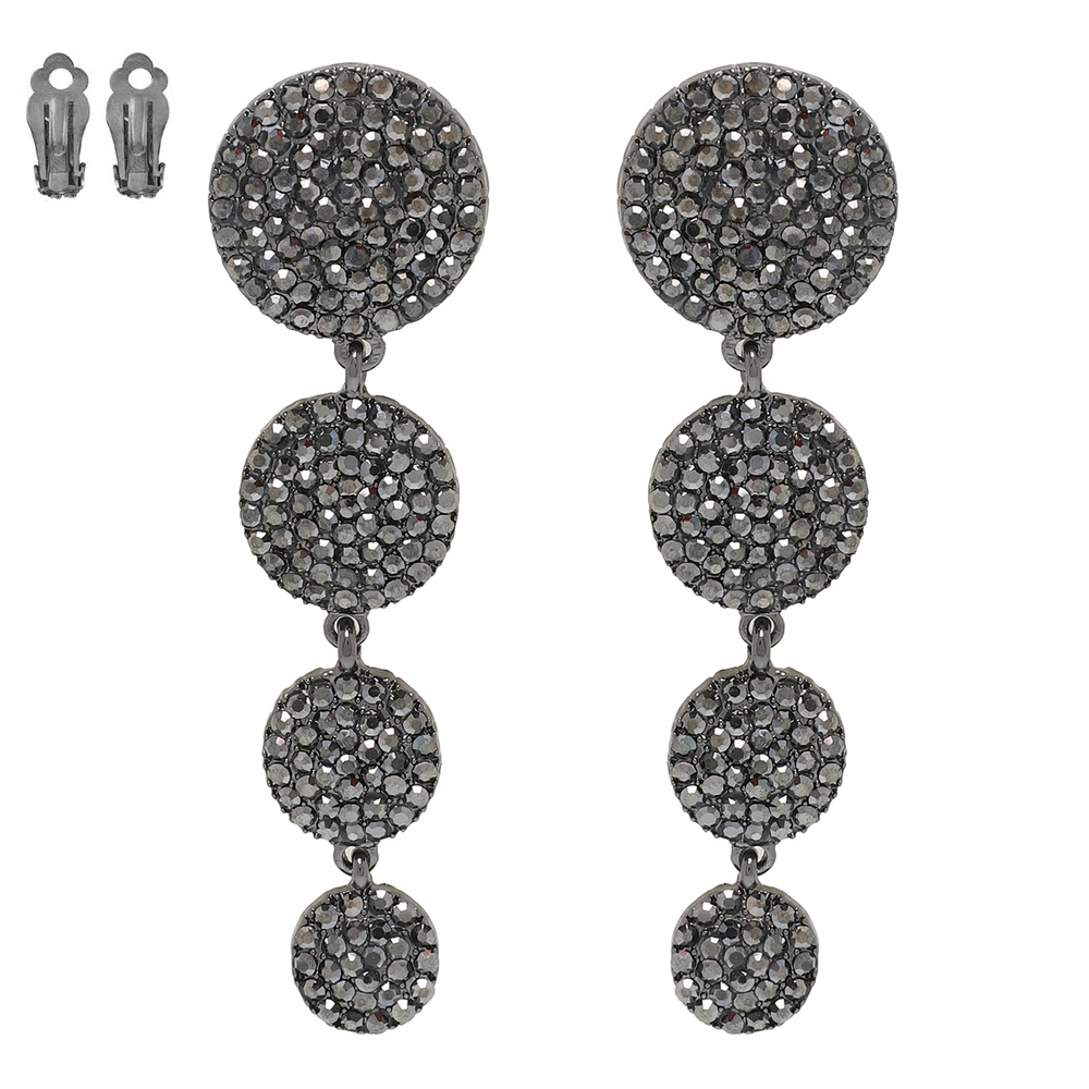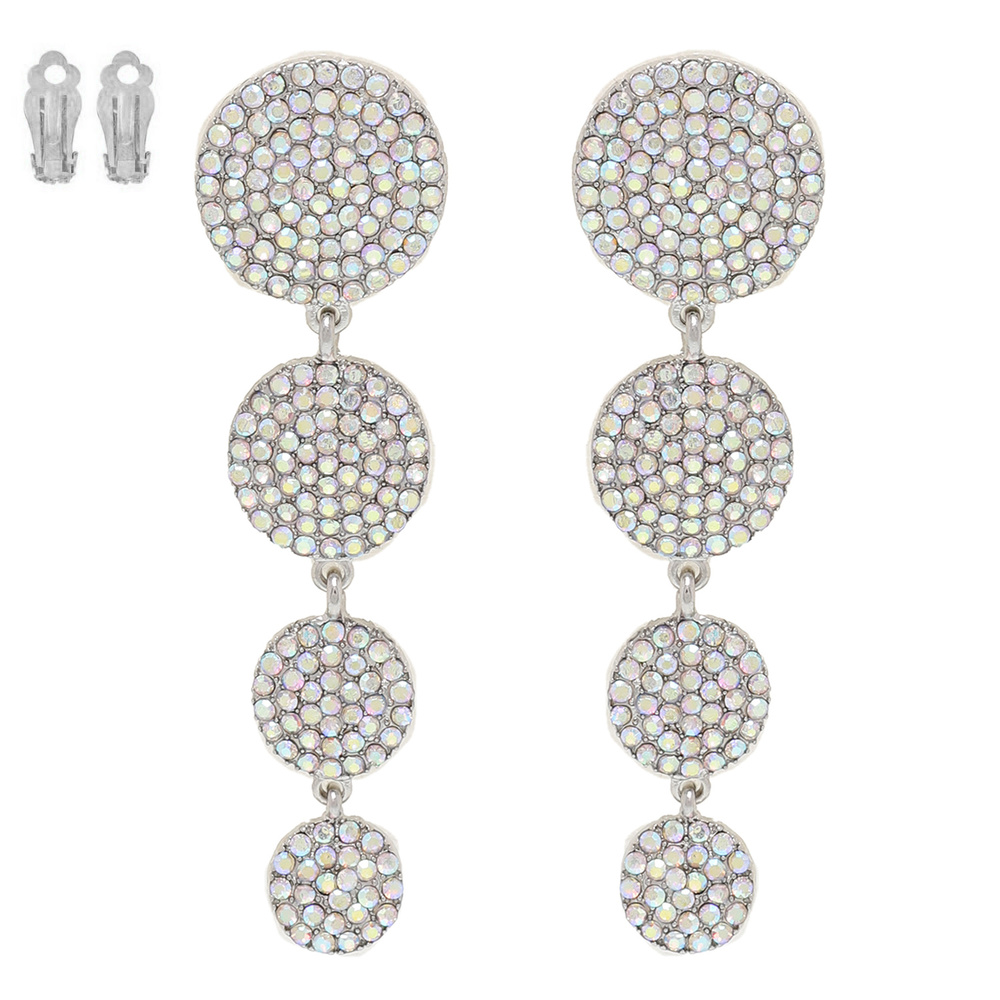 4-tier Crystal Pave Disc Clip-on Drop Earrings
