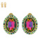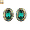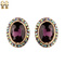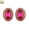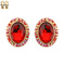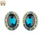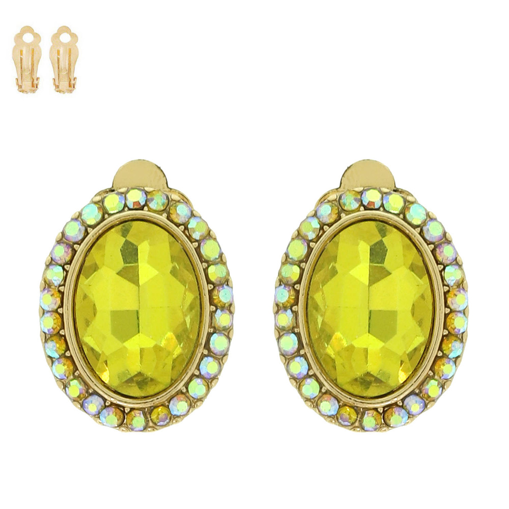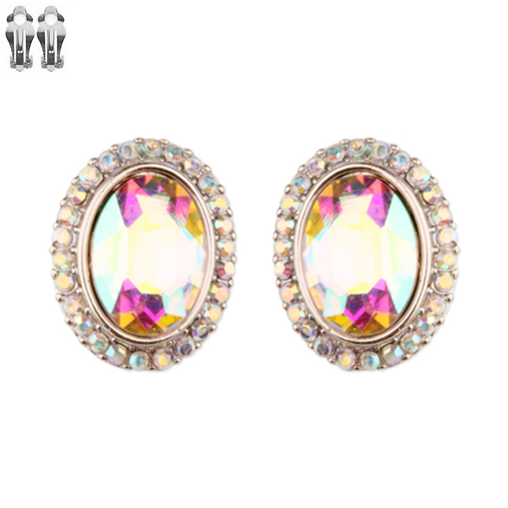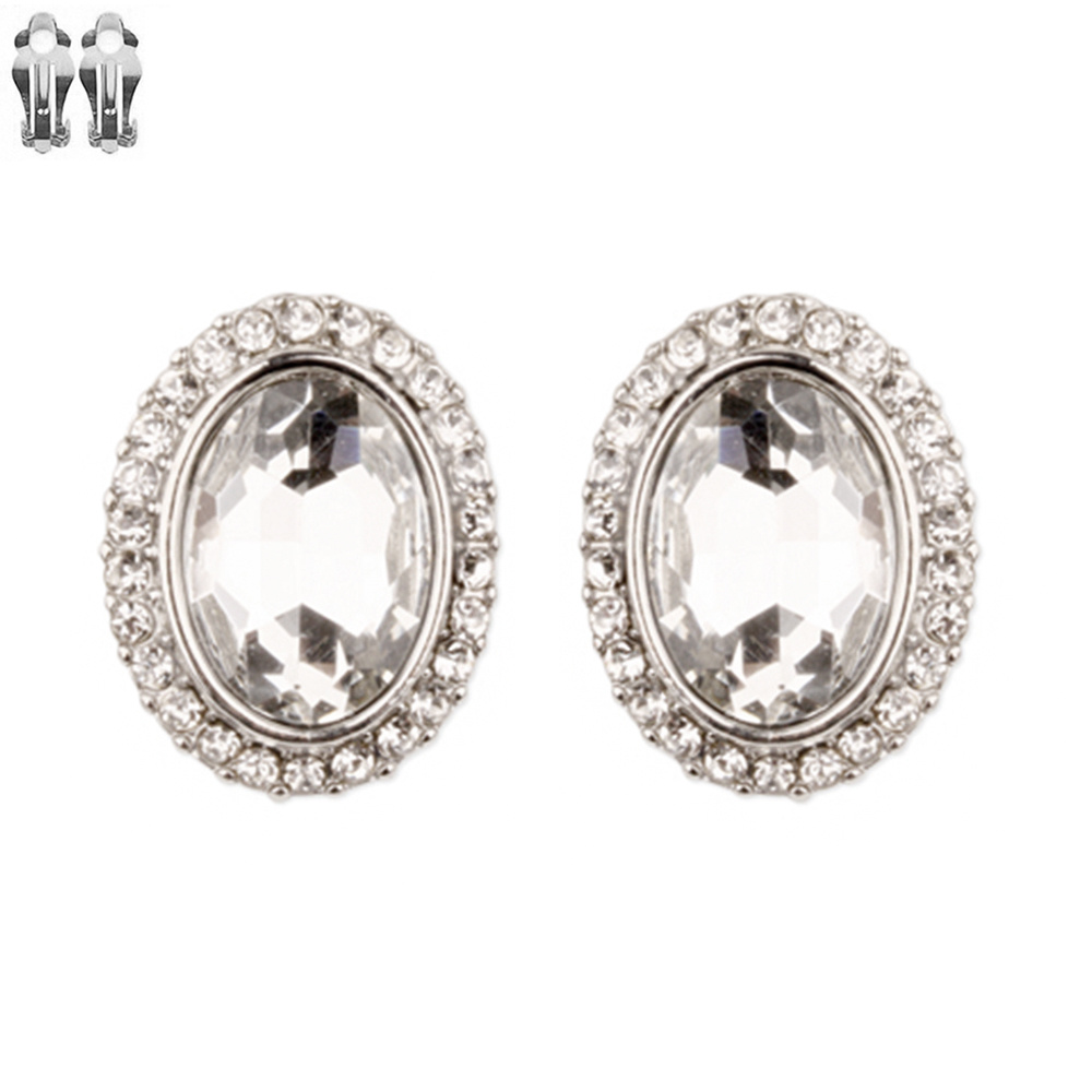 RHINESTONE HALO OVAL CUT CRYSTAL CLIP-ON STUD EARRINGS IN SILVER-TONE METAL
