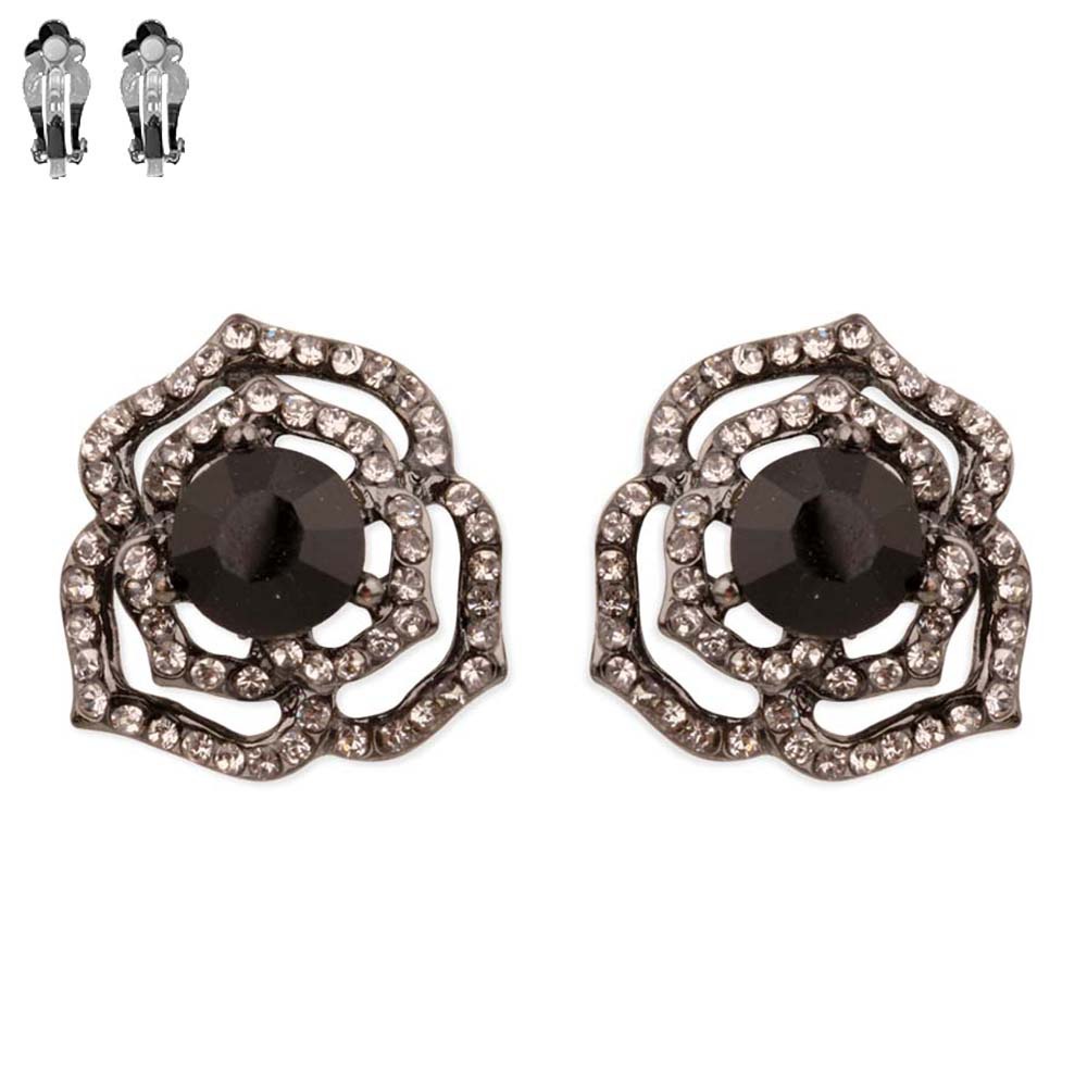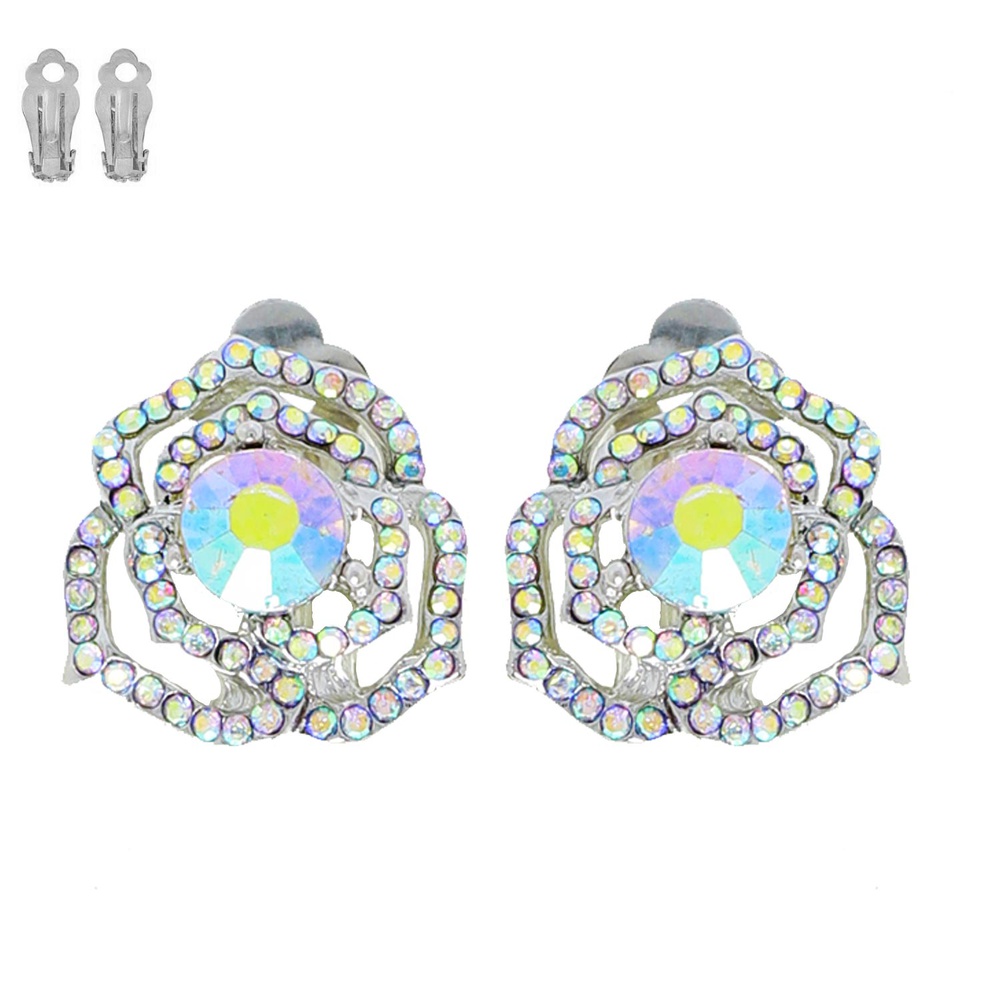 FLORAL CRYSTAL RHINESTONE CLIP-ON EARRINGS