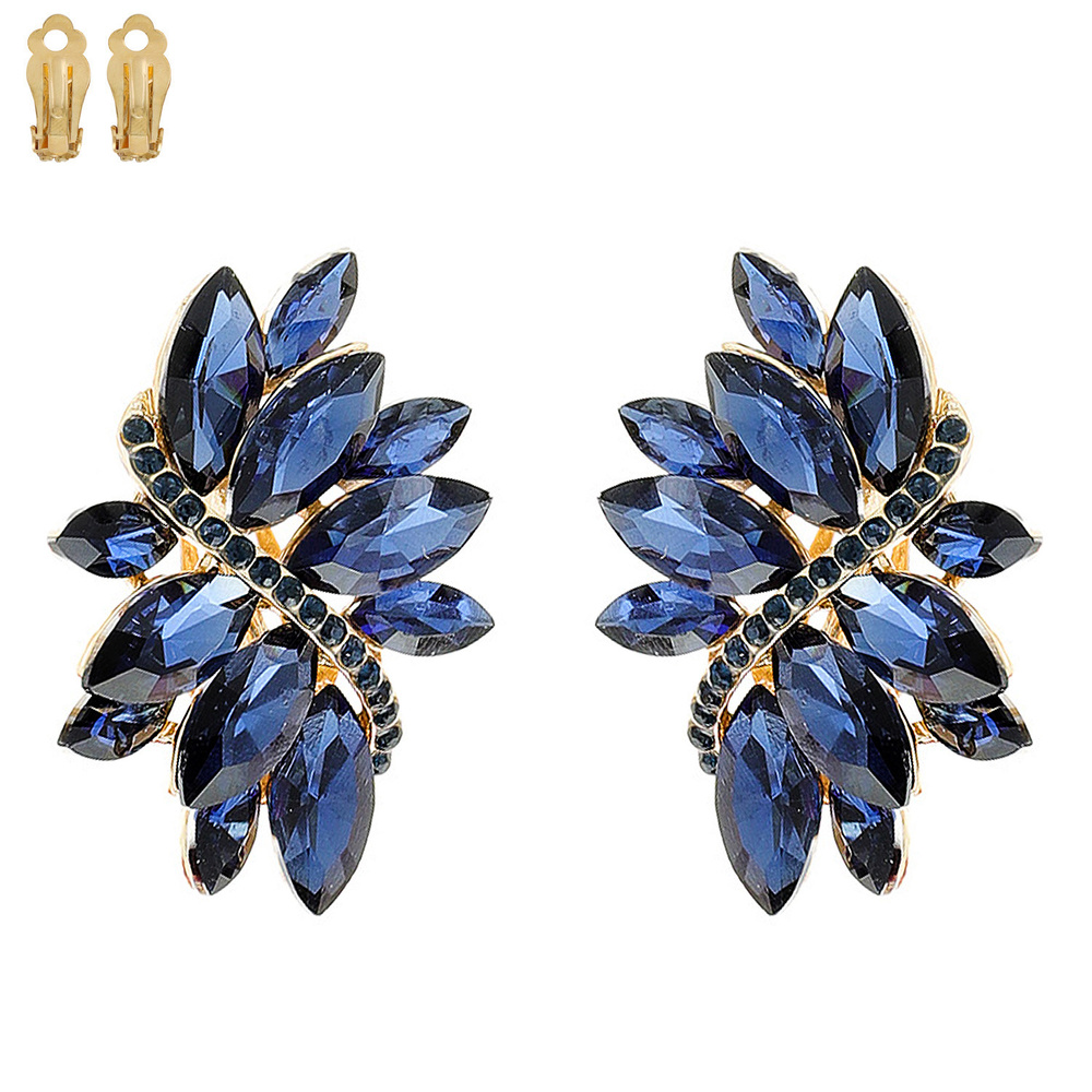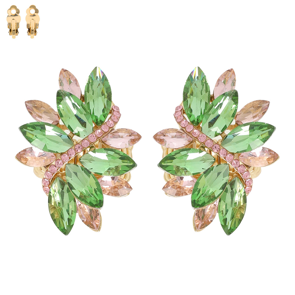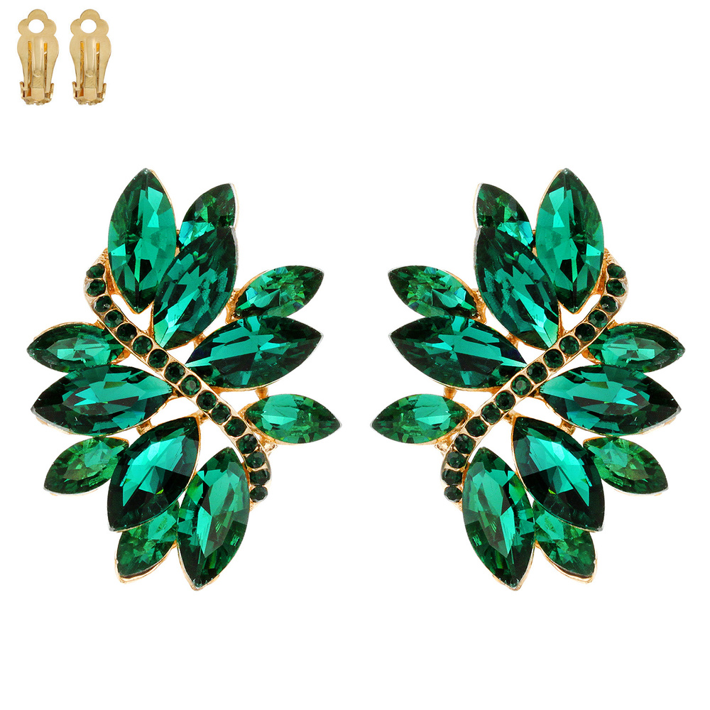 MARQUISE GEM LEAF CLUSTER METAL CLIP EARRINGS
