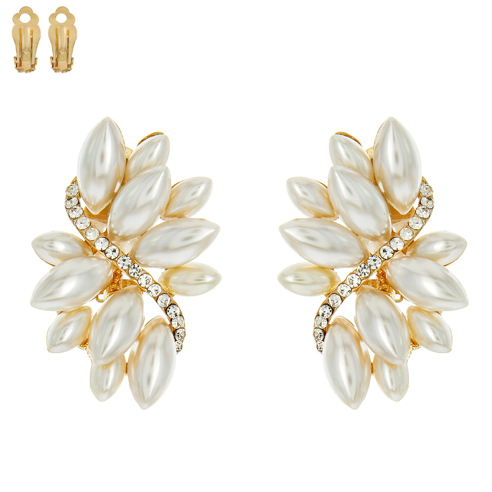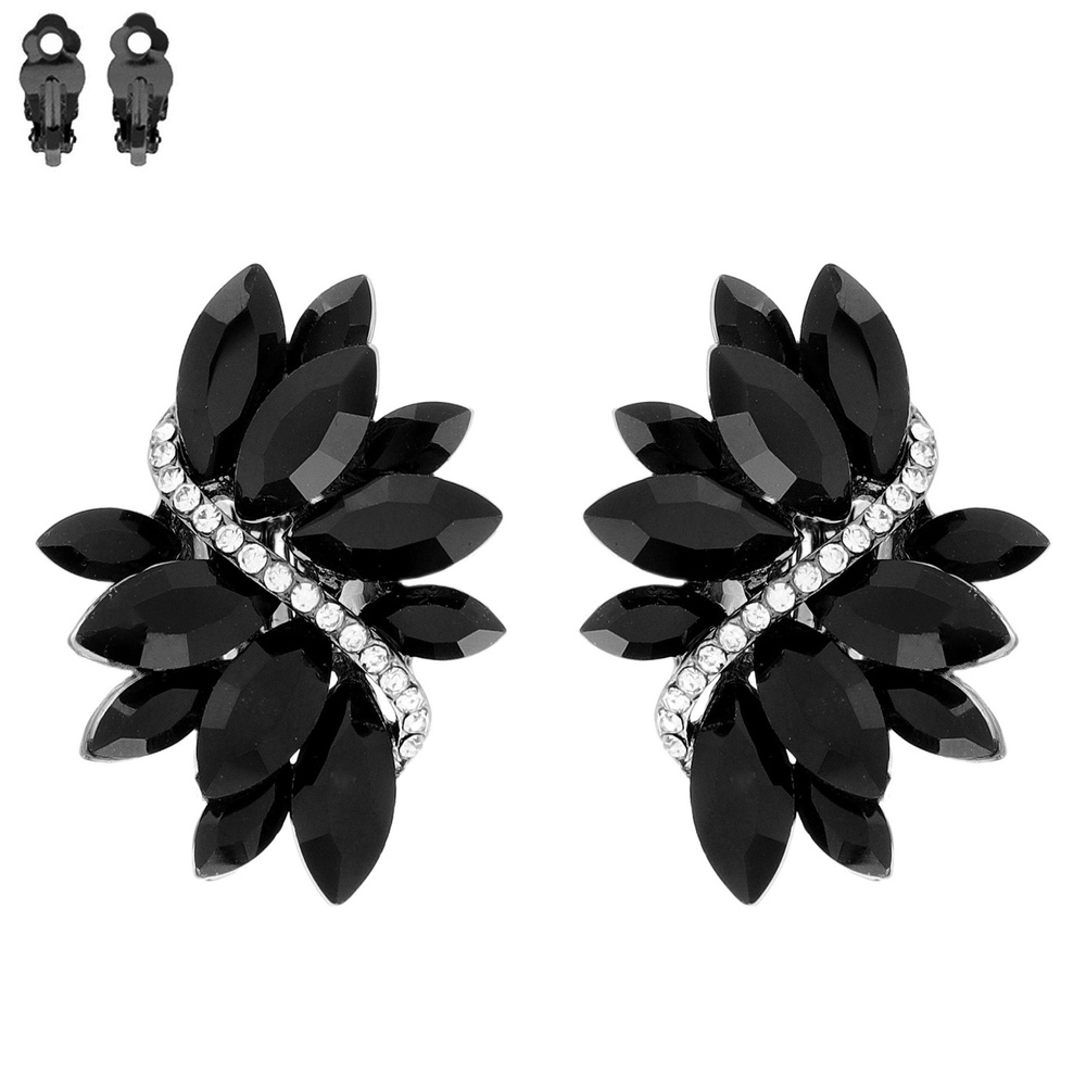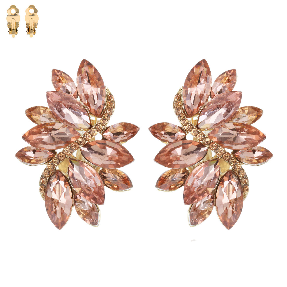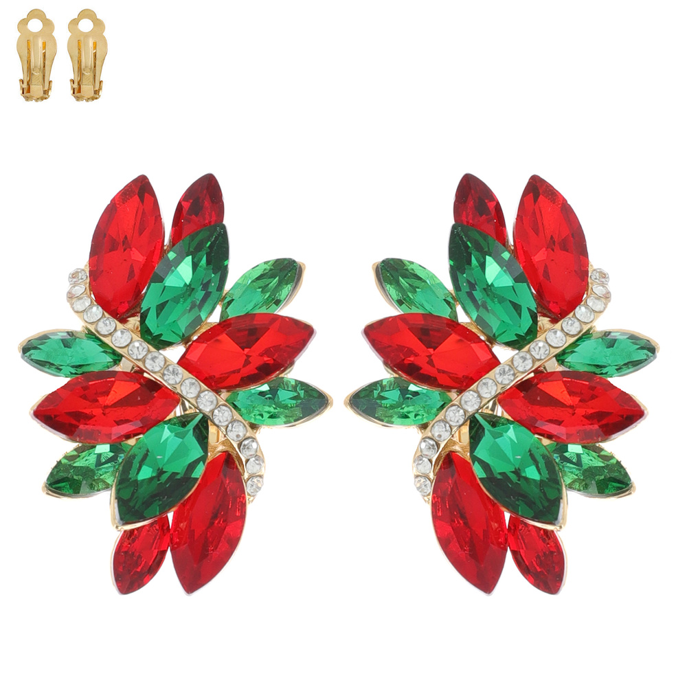 MARQUISE GEM LEAF CLUSTER METAL CLIP EARRINGS