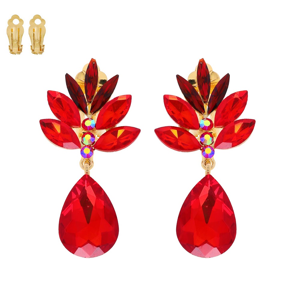 2-TIER PETAL CLUSTER TEARDROP CRYSTAL RHINESTONE CLIP-ON EARRINGS