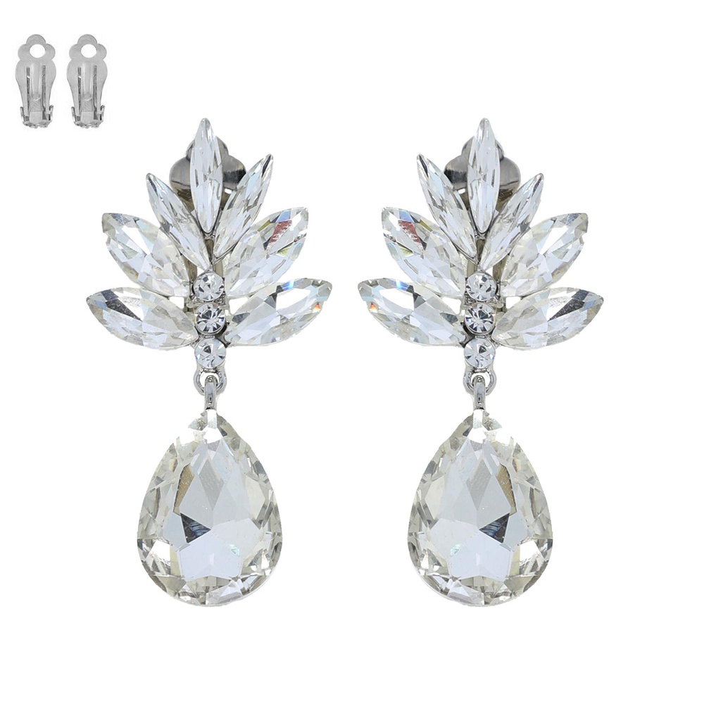 Petal Cluster Teardrop Crystal Clip-on Earrings