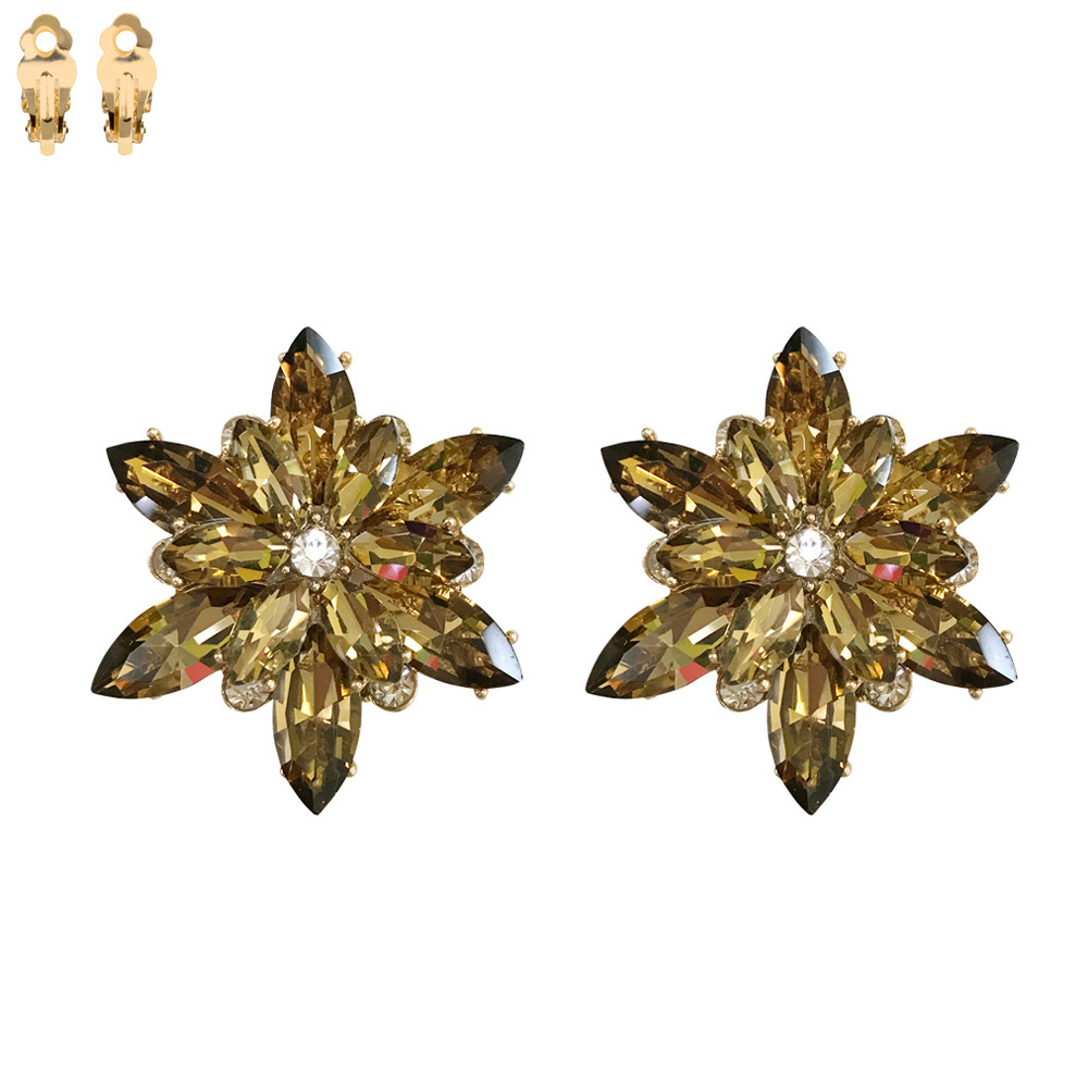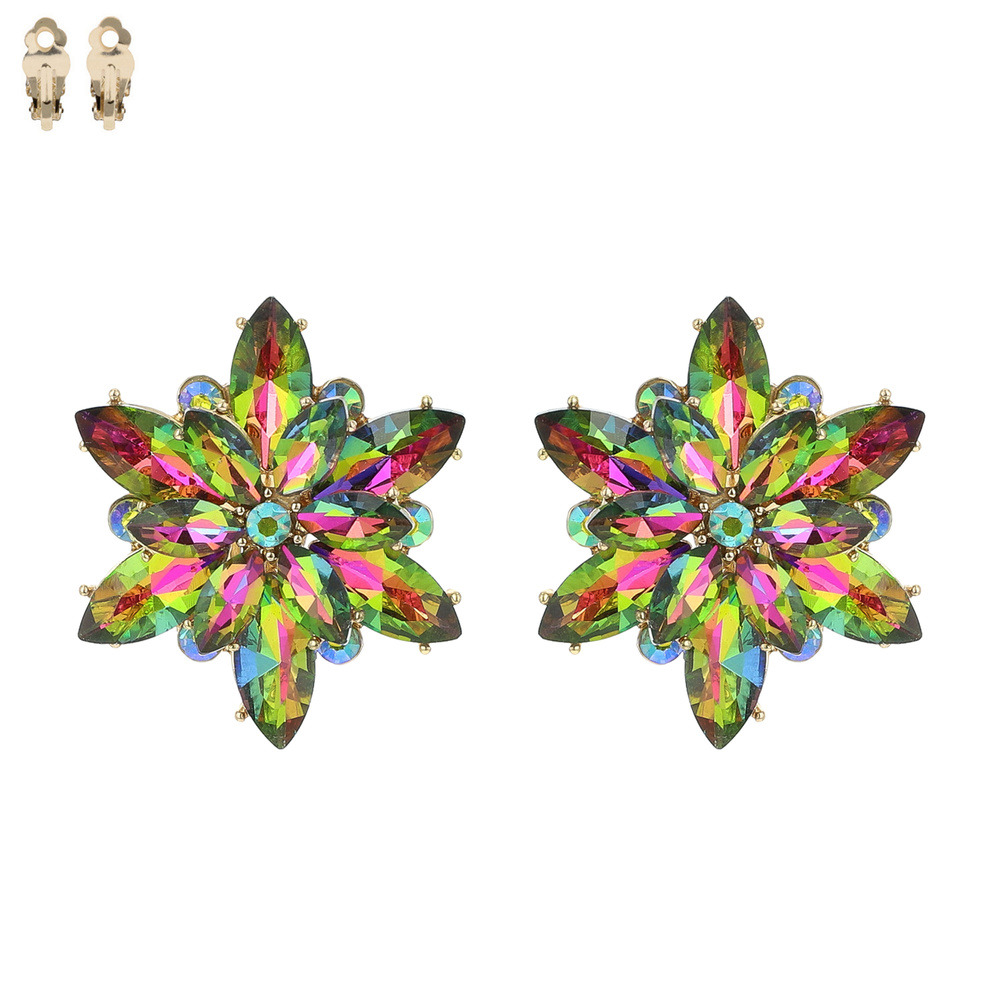 Gemstone Flower Snowflake Evening Clip On Earrings