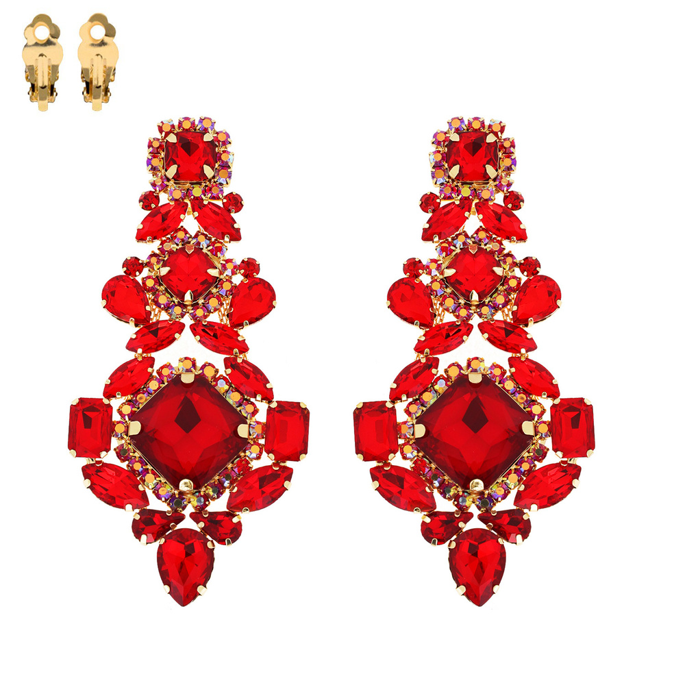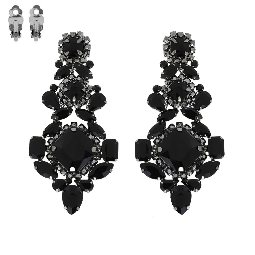 CRYSTAL RHINESTONE CLUSTER LONG DROP BAROQUE CLIP-ON EARRINGS