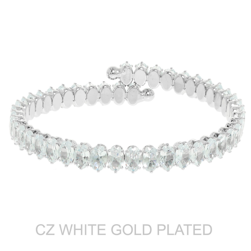 WHITE GOLD PLATED OVAL CUT CUBIC ZIRCONIA TENNIS BRACELET