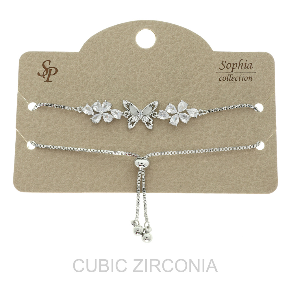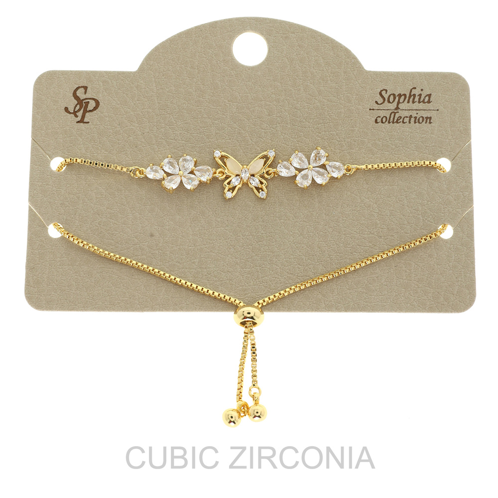 CUBIC ZIRCONIA WHIMSICAL GARDEN BUTTERFLY TENNIS BOLO SLIDER BRACELET