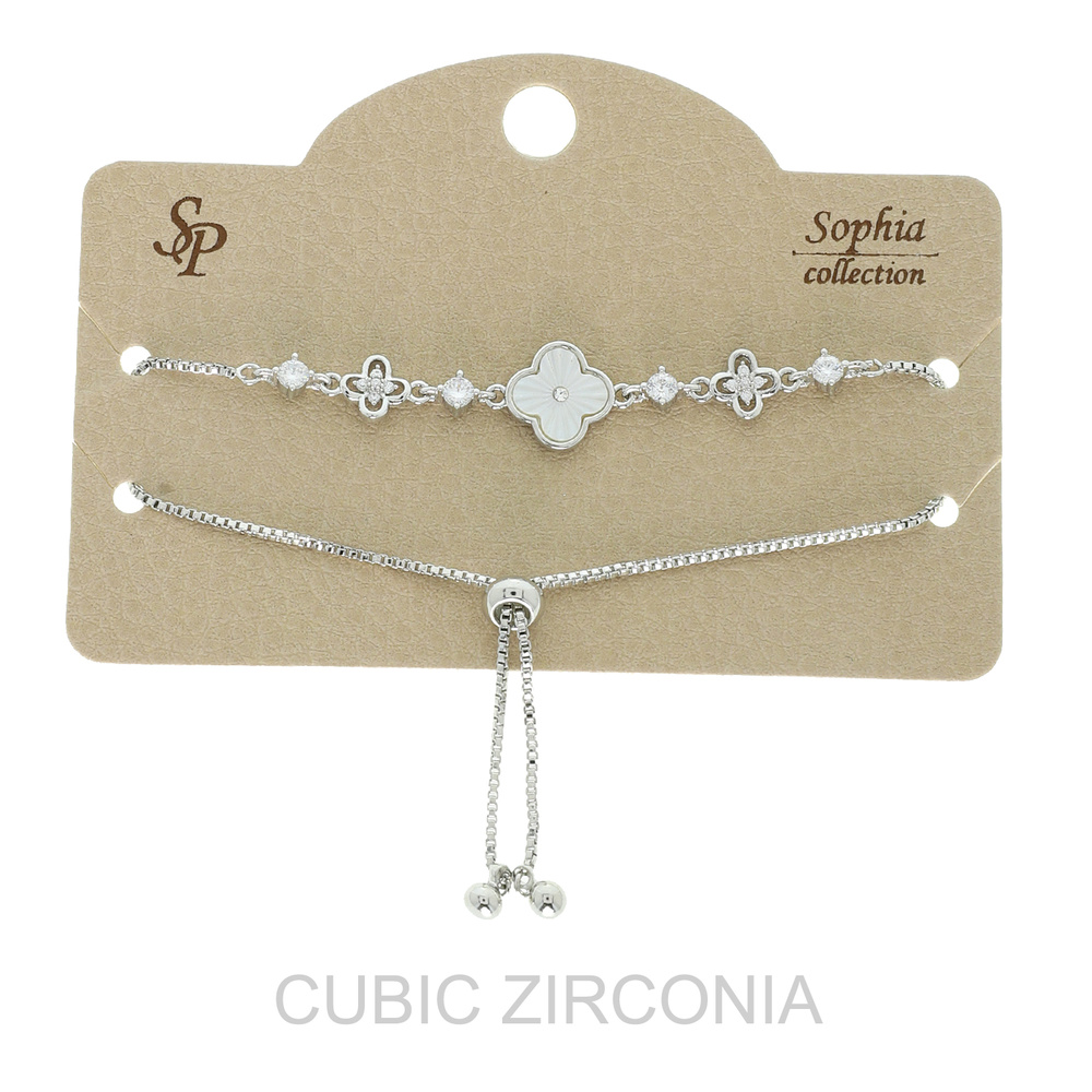 Gold Plated Cz Quatrefoil Bolo Slider Bracelet