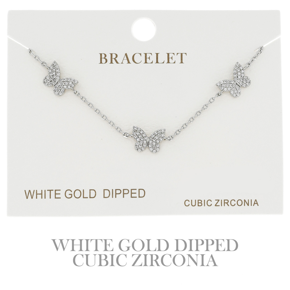 CUBIC ZIRCONIA PAVE BUTTERFLY ADJUSTABLE BRACELET IN YELLOW GOLD AND WHITE GOLD PLATING