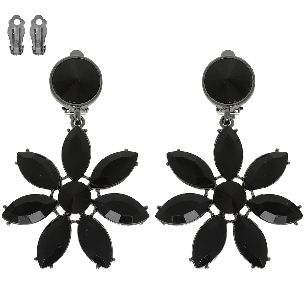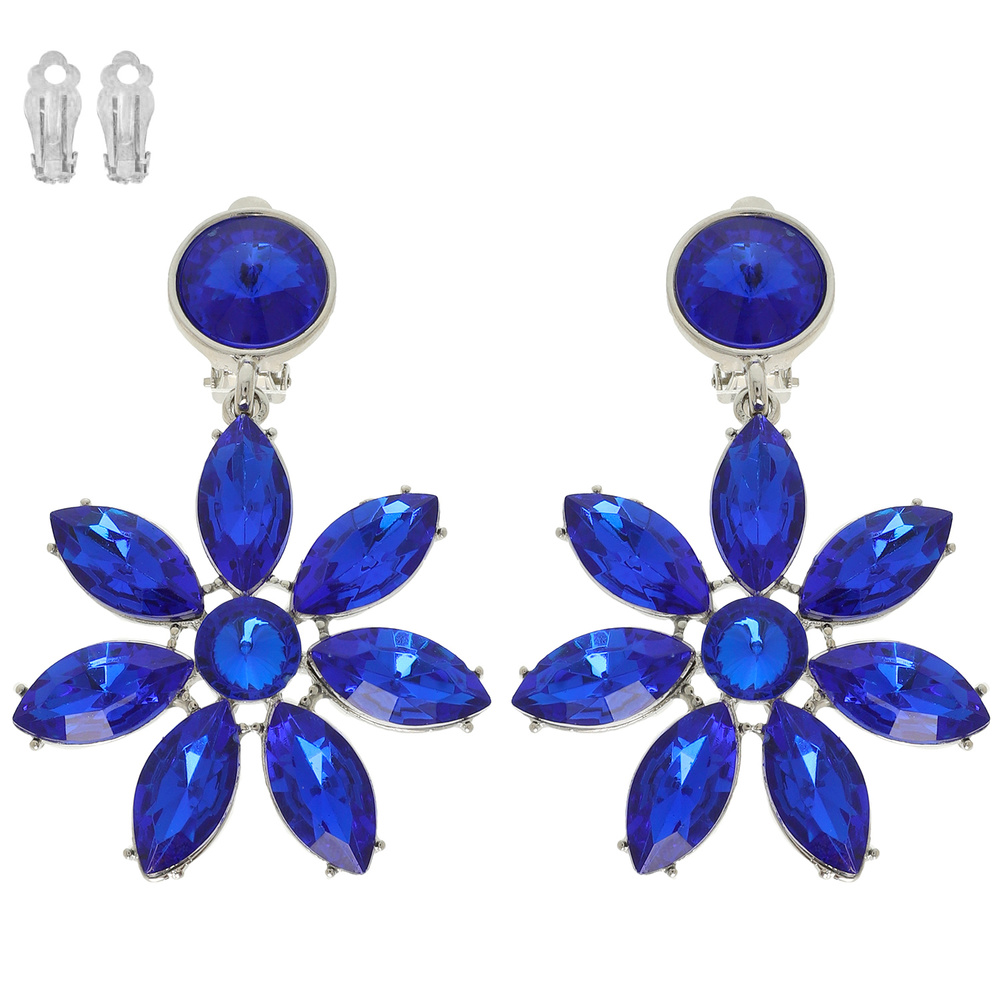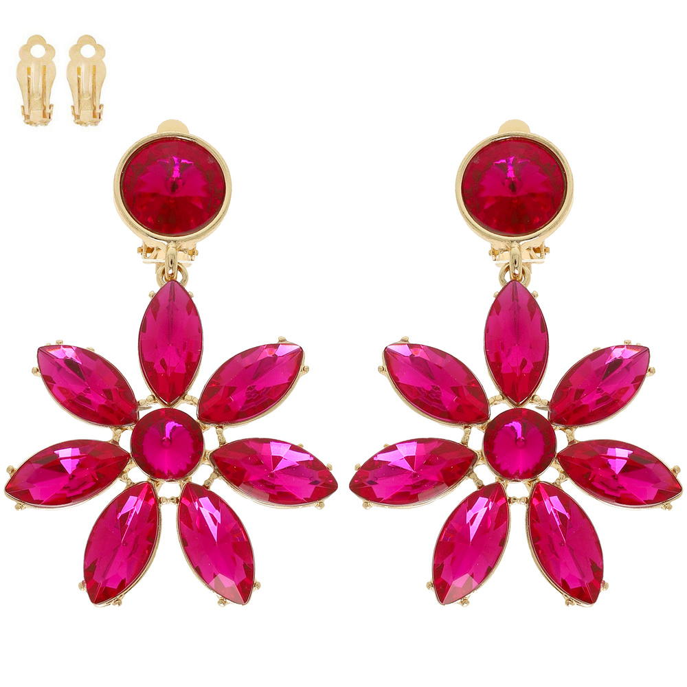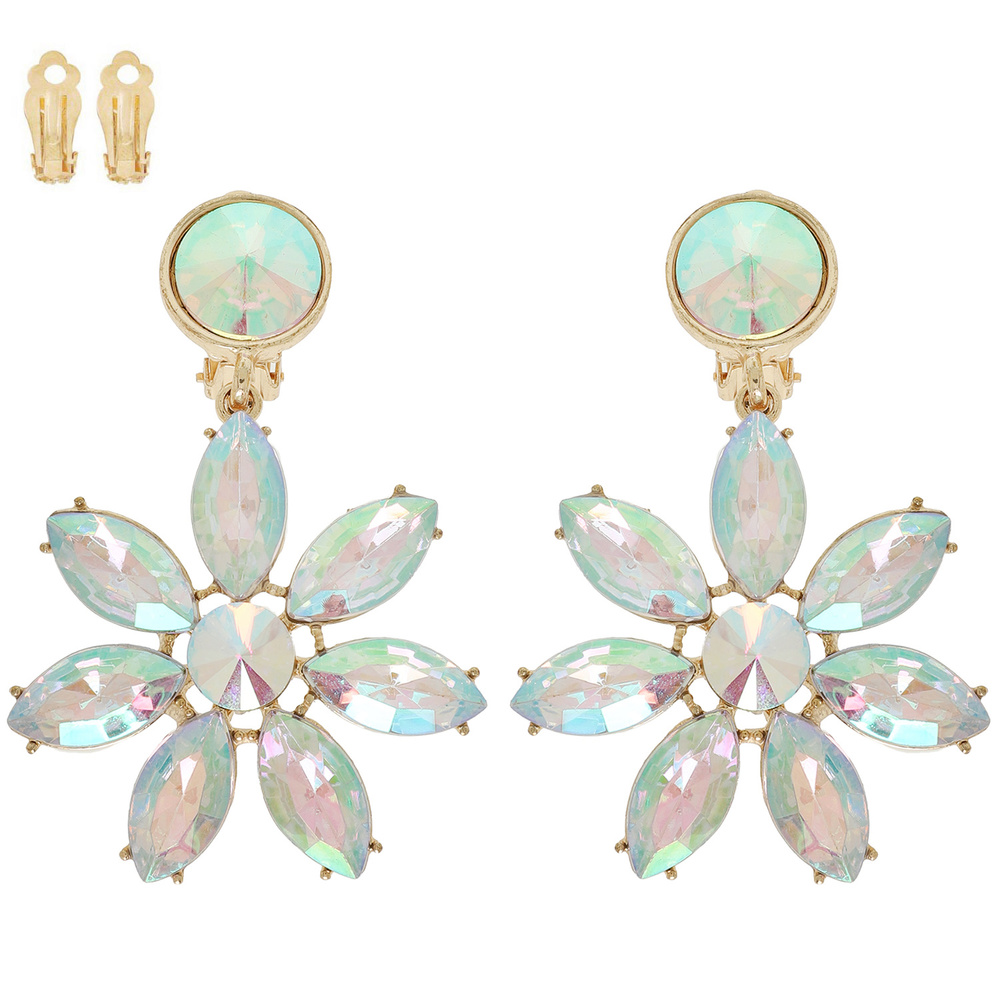 Floral Multi-cut Crystal Clip On Earrings