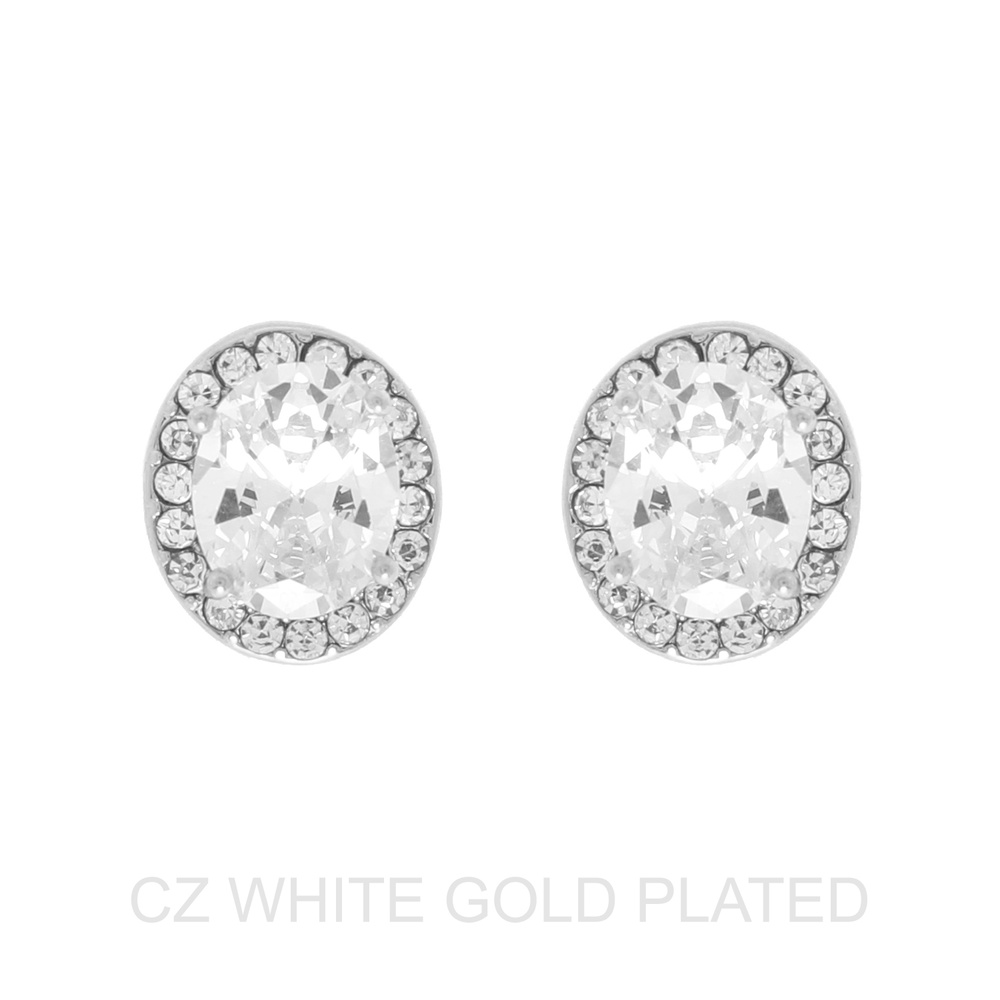 GOLD PLATED CUBIC ZIRCONIA PAVE OVAL HALO STUD EARRINGS
