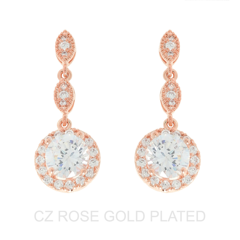 3-TIER GOLD PLATED CUBIC ZIRCONIA PAVE LEAF DROP EARRINGS