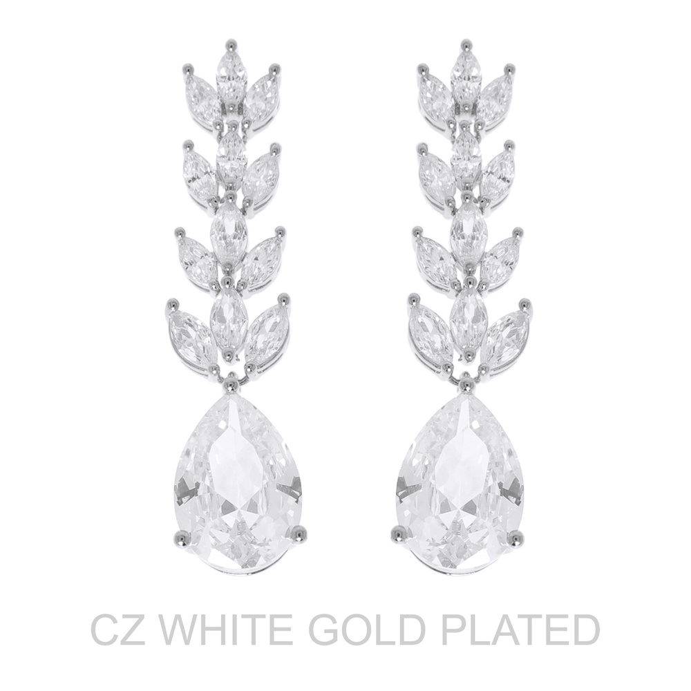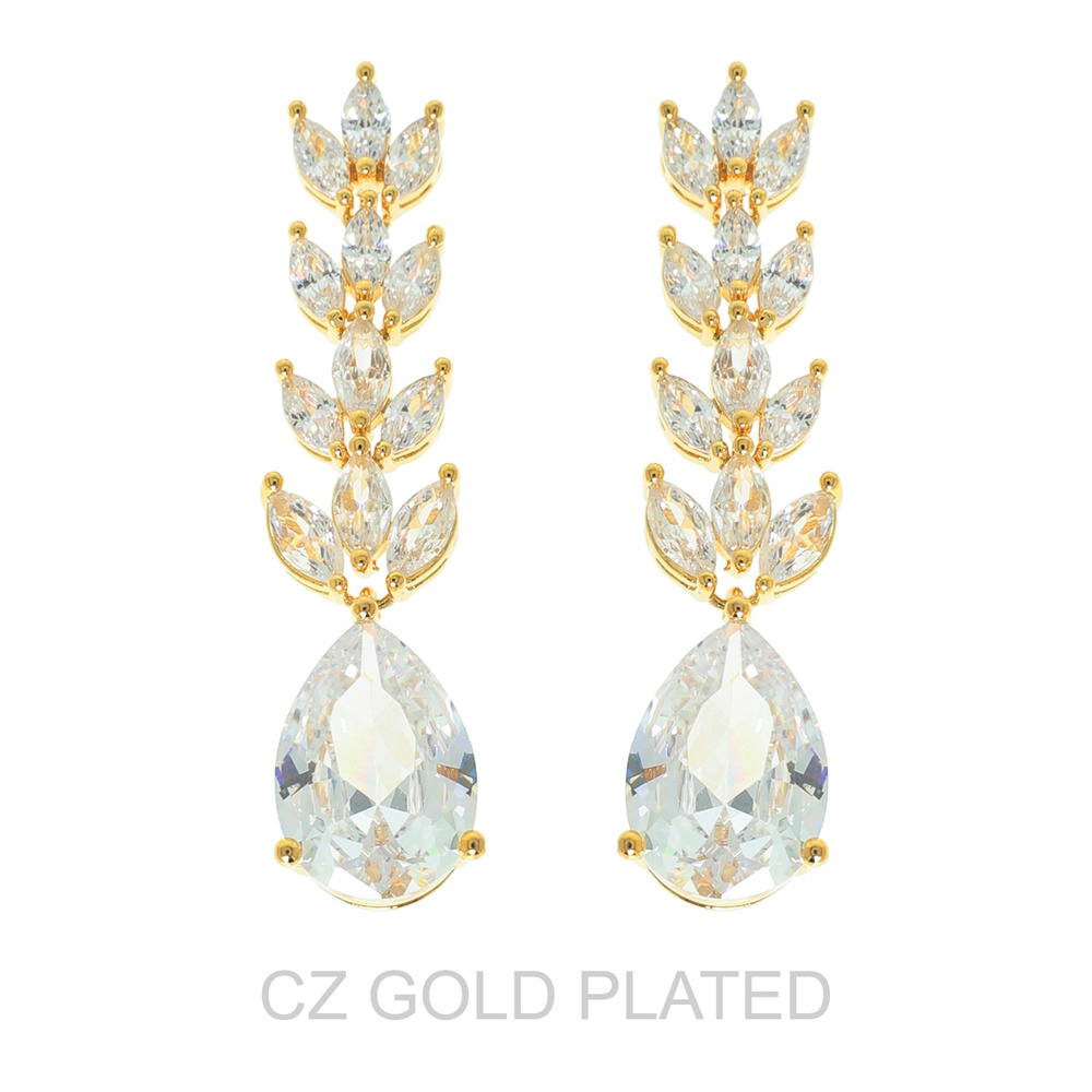 GOLD PLATED CUBIC ZIRCONIA TEARDROP GEMSTONE VINE OLIVE BRANCH DROP EARRINGS