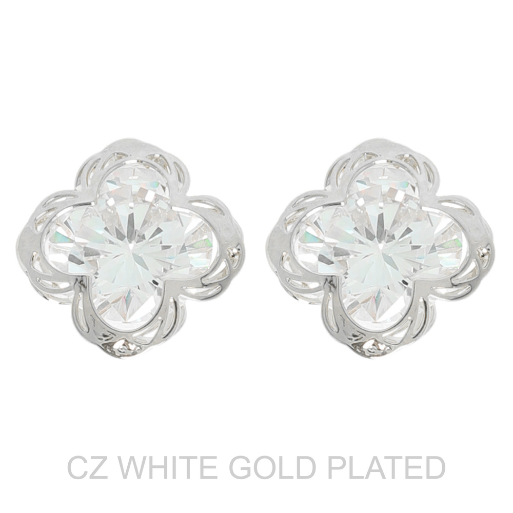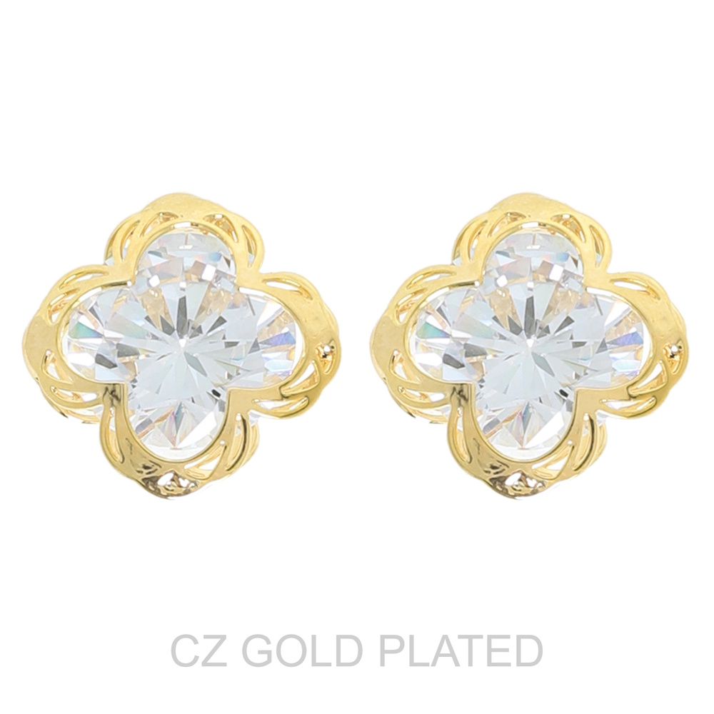 GOLD PLATED CUBIC ZIRCONIA QUATREFOIL CLOVER STUD EARRINGS