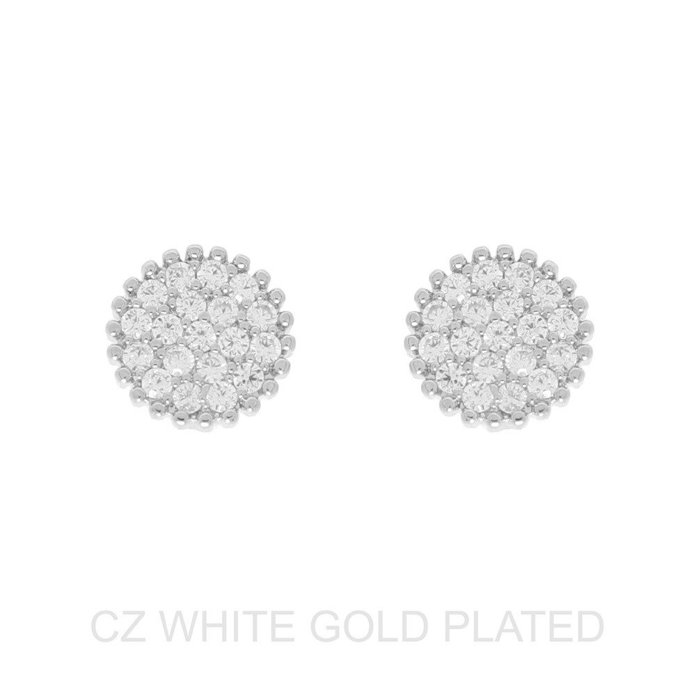 GOLD PLATED CUBIC ZIRCONIA PAVE DISC STUD EARRINGS