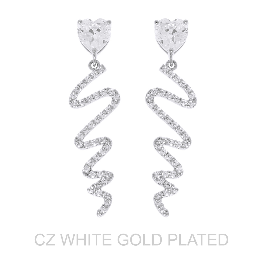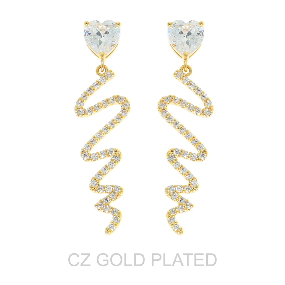 Gold Plated Cz Heartbeat Drop Earrings