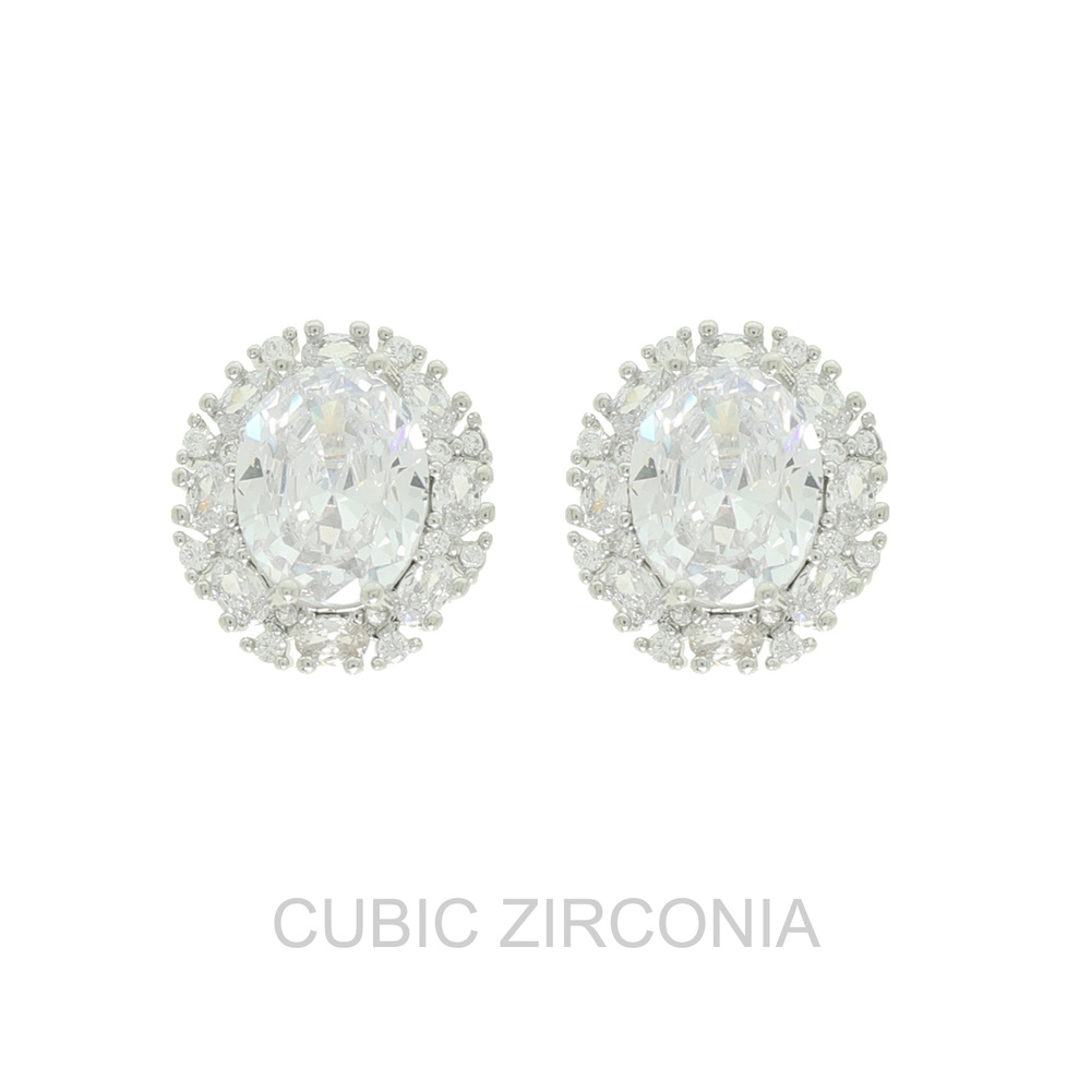 CUBIC ZIRCONIA GEMSTONE OVAL HALO STUD EARRINGS