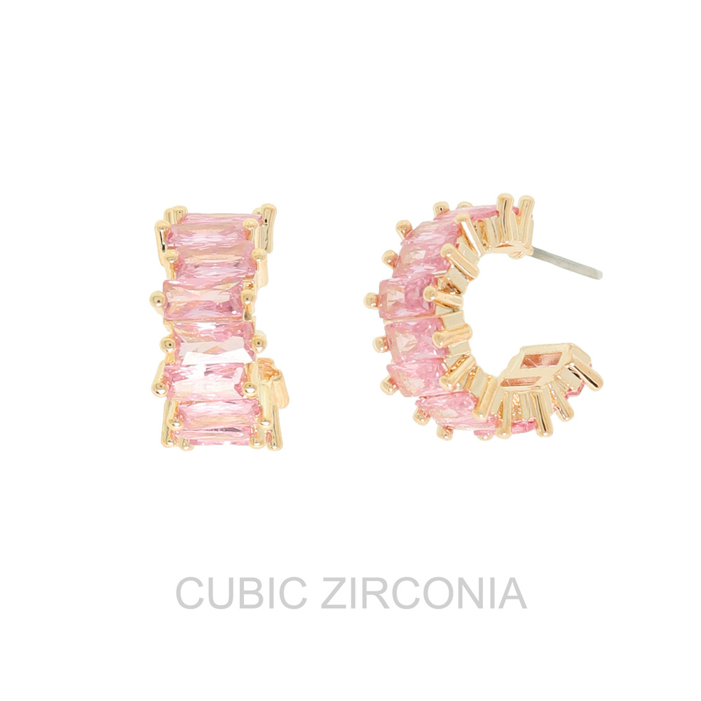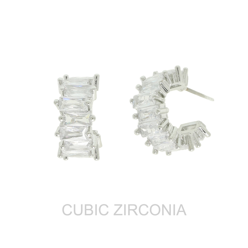 CUBIC ZIRCONIA GEMSTONE BAGUETTE CUT OPEN HOOP EARRINGS