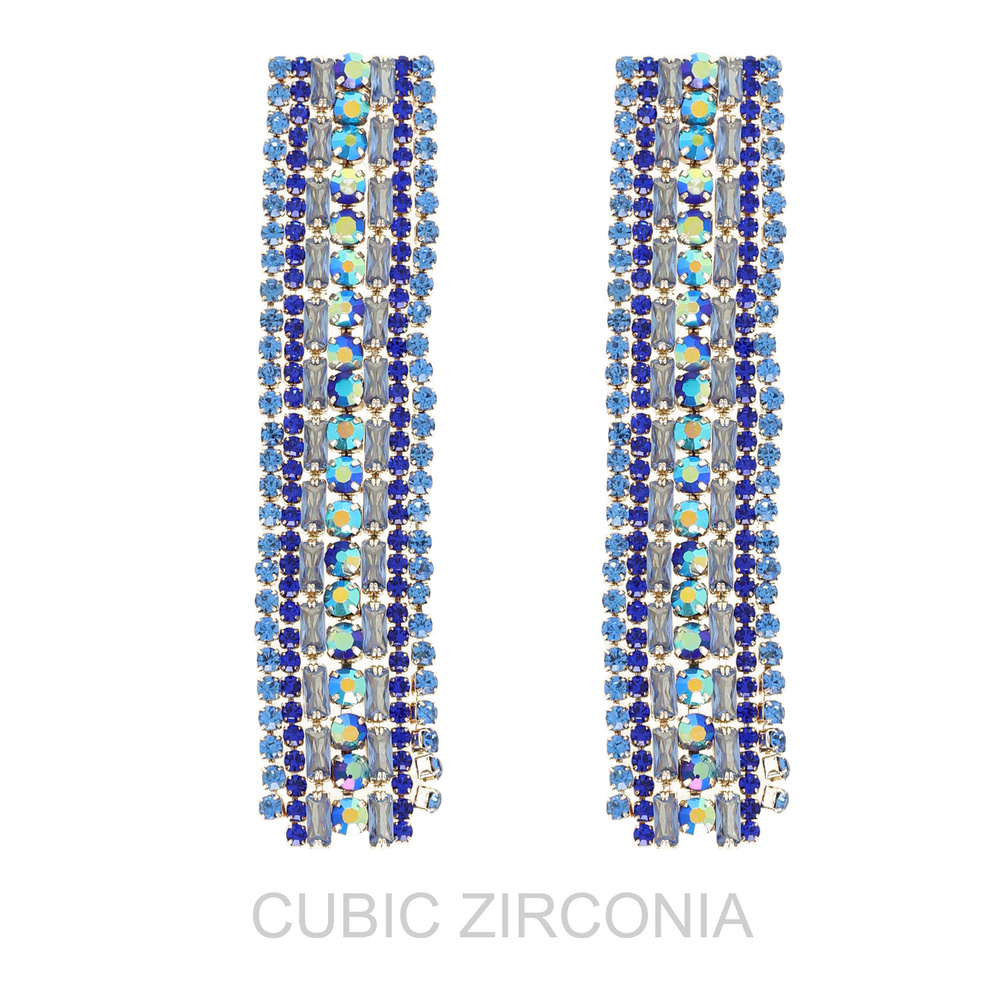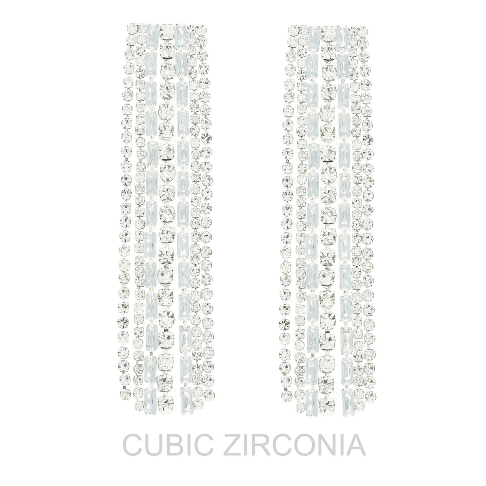 CUBIC ZIRCONIA MONOCHROME RECTANGULAR TASSEL LONG DROP EARRINGS