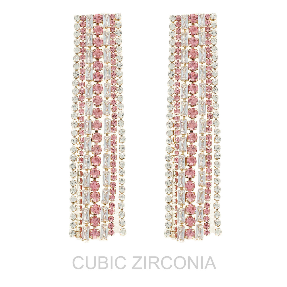 Cubic Zirconia Rectangular Tassel Earrings