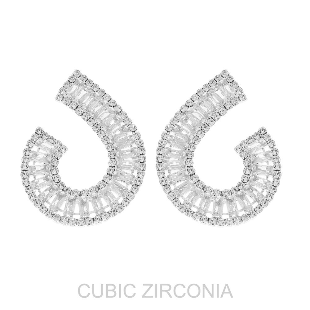 Cubic Zirconia Baguette Cut Spiral Arch Earrings