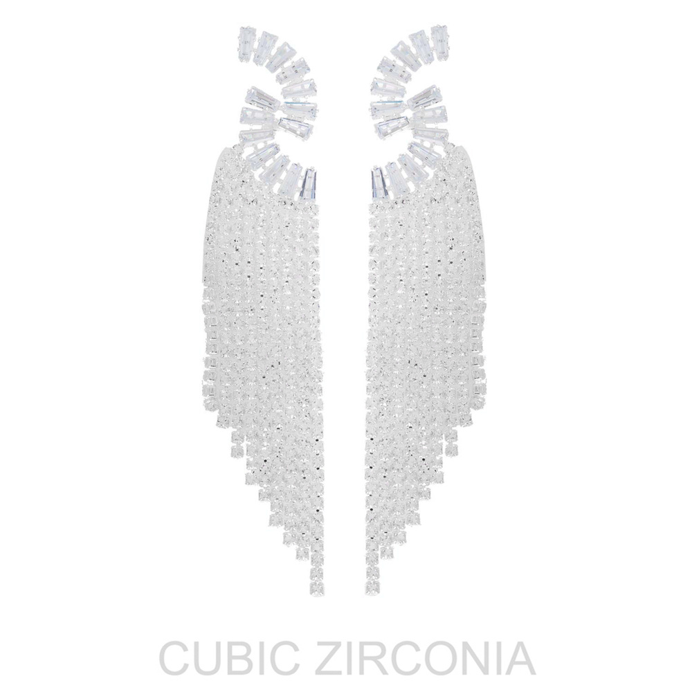 CUBIC ZIRCONIA S CURVE FACETED RHINESTONE TASSEL EARRINGS IS SILVER-TONE METAL