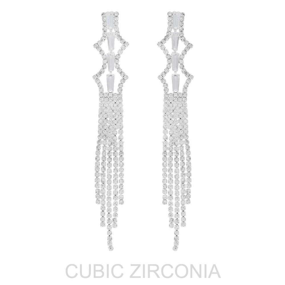 Cz Faceted Rhinestone Geometric Tassel Earrings