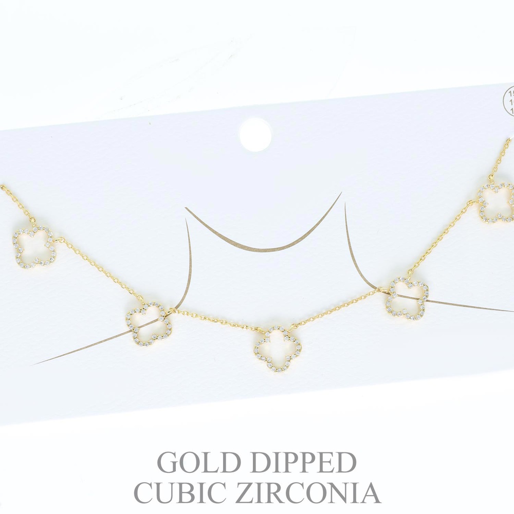 15.5 Inch Gold Plated Cz Quatrefoil Link Necklace