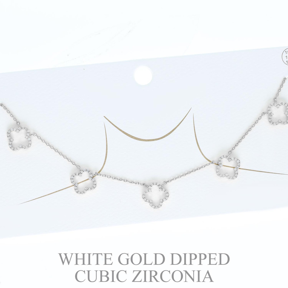 15.5" GOLD PLATED ADJUSTABLE CUBIC ZIRCONIA QUATREFOIL CLOVER LINK PENDANT NECKLACE
