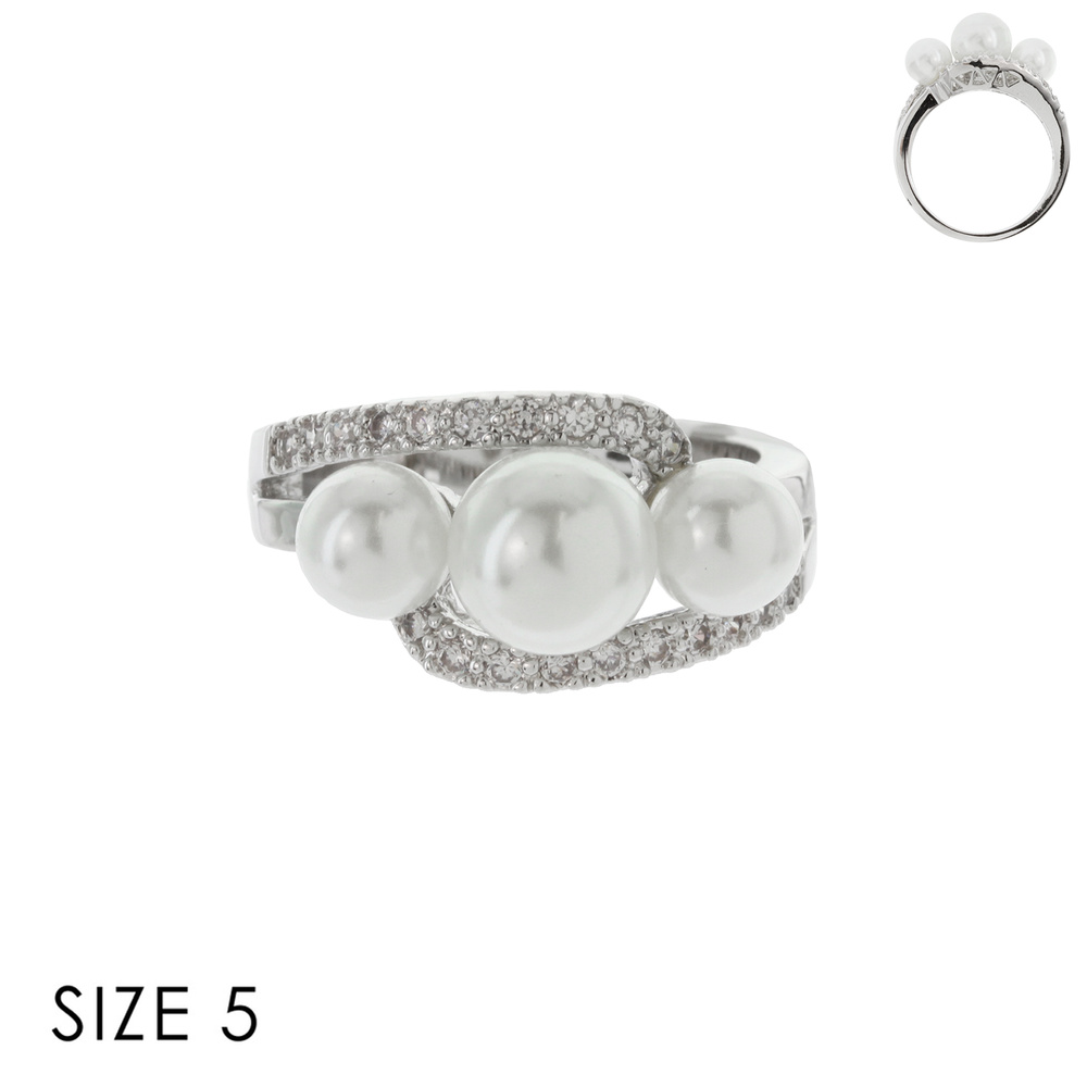 CZ RING W/ 3 PEARL CENTER