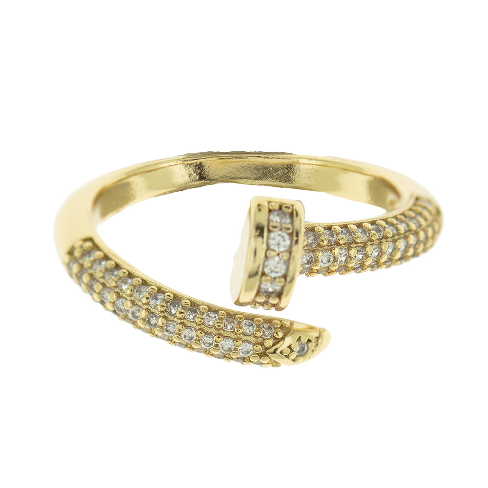 GOLD DIPPED CUBIC ZIRCONIA ADJUSTABLE NAIL SPIRAL WRAP RING