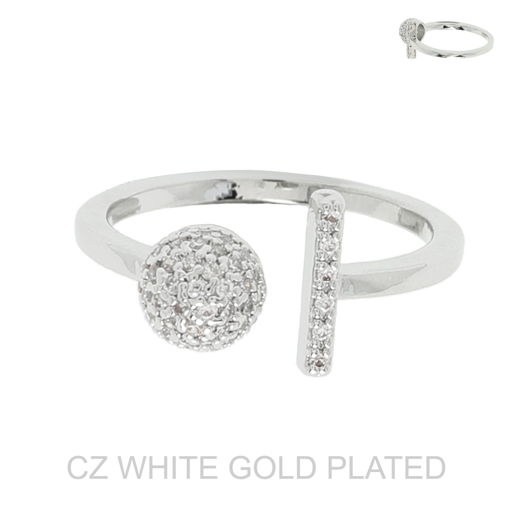 VERTICAL BAR AND SPHERE GOLD PLATED CUBIC ZIRCONIA ADJUSTABLE CUFF RING