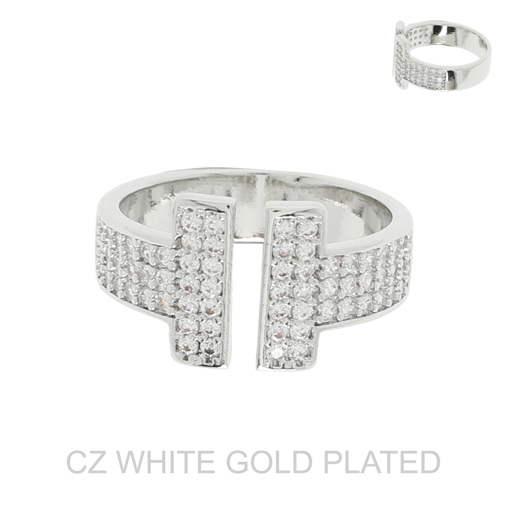 GOLD PLATED CUBIC ZIRCONIA VERTICAL DOUBLE BAR ADJUSTABLE OPEN CUFF RING