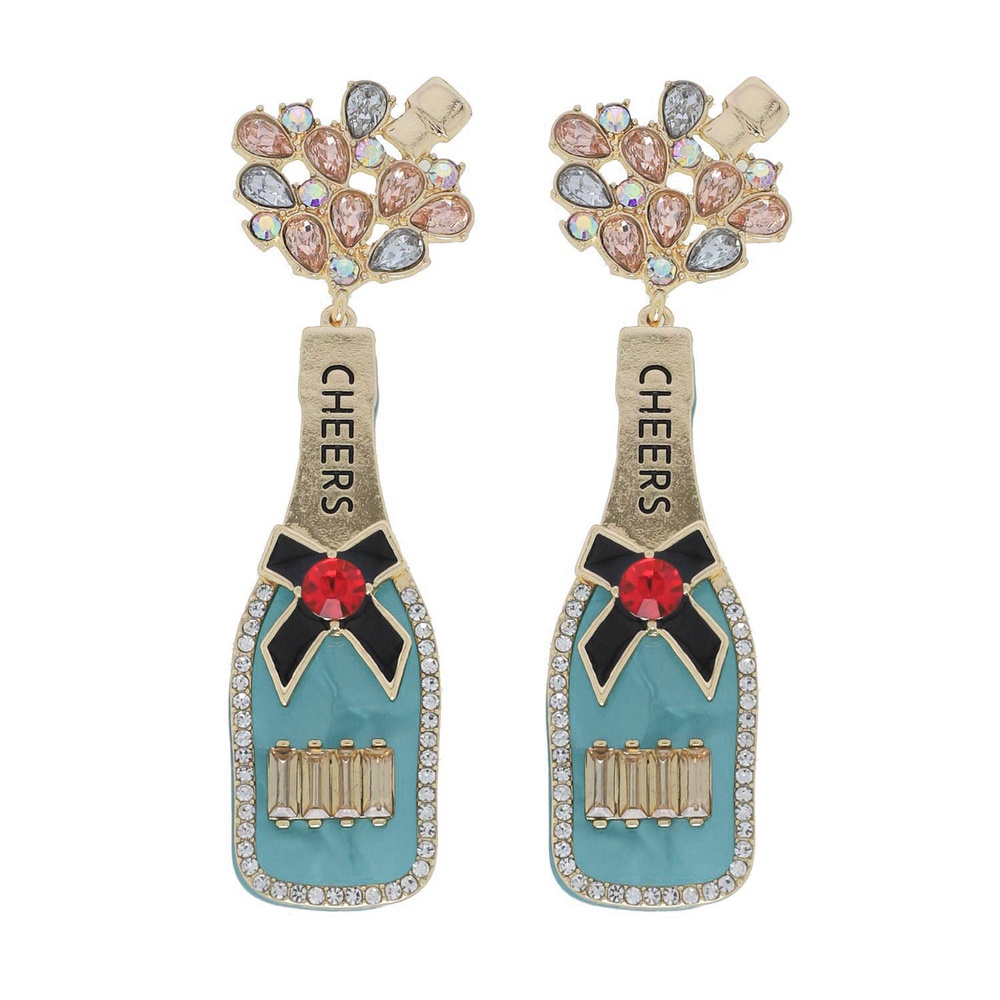 2-TIER CRYSTAL RHINESTONE BRIDAL TOAST CHAMPAGNE BOTTLE LONG DROP EARRINGS