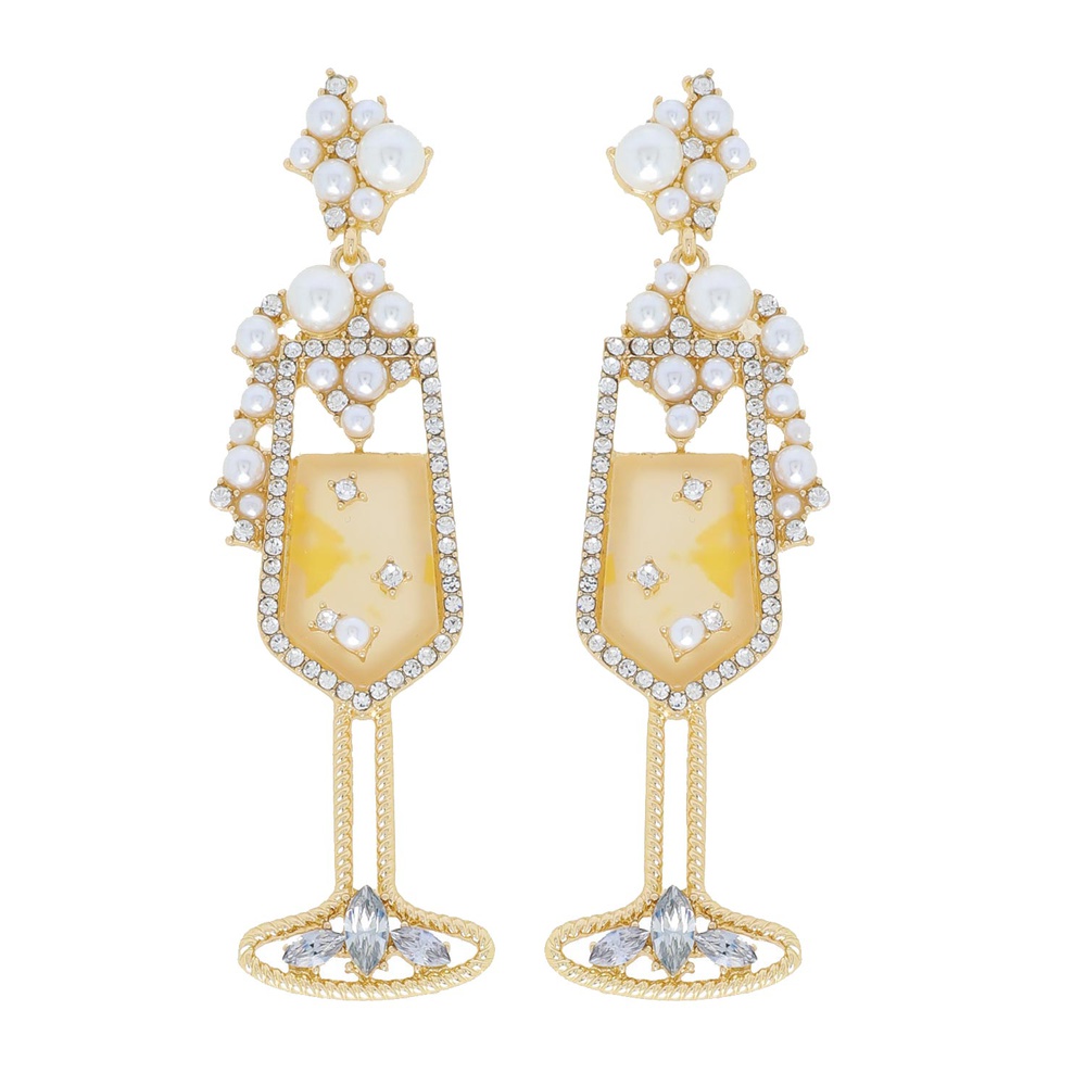 Champagne Toast Crystal Enamel Long Drop Earrings