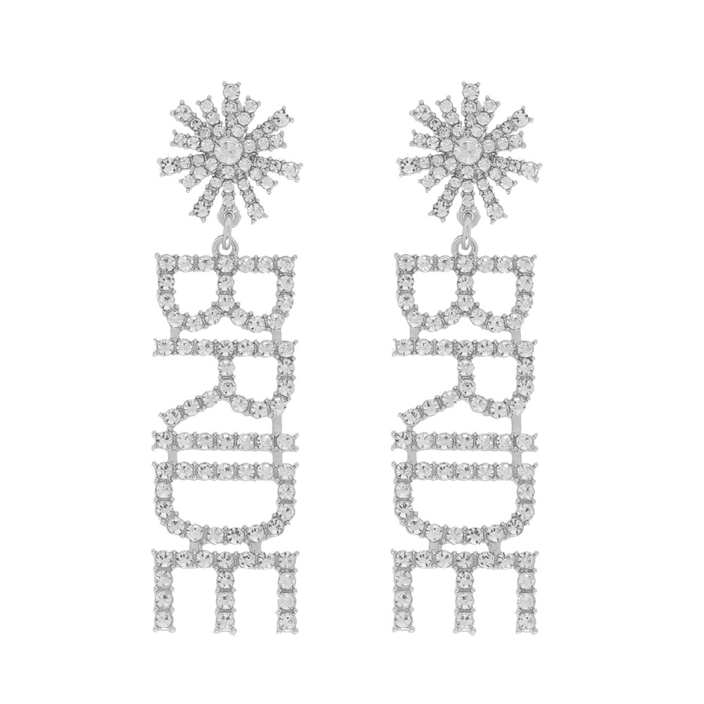 2-tier Star Post "bride" Crystal Rhinestone Pave Long Drop Earrings