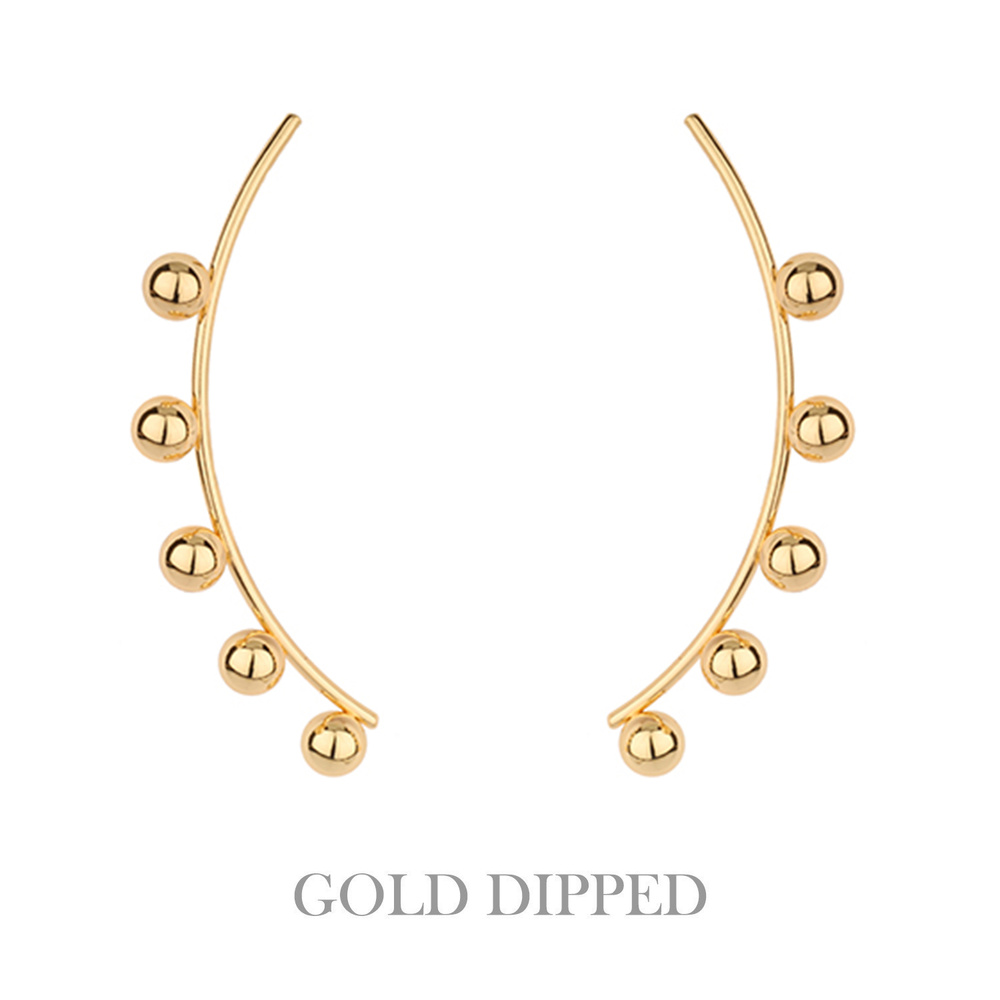 VERTICAL BALL BEADED ARCH POST EARRINGS IN YELLOW GOLD DIPPED FINISH