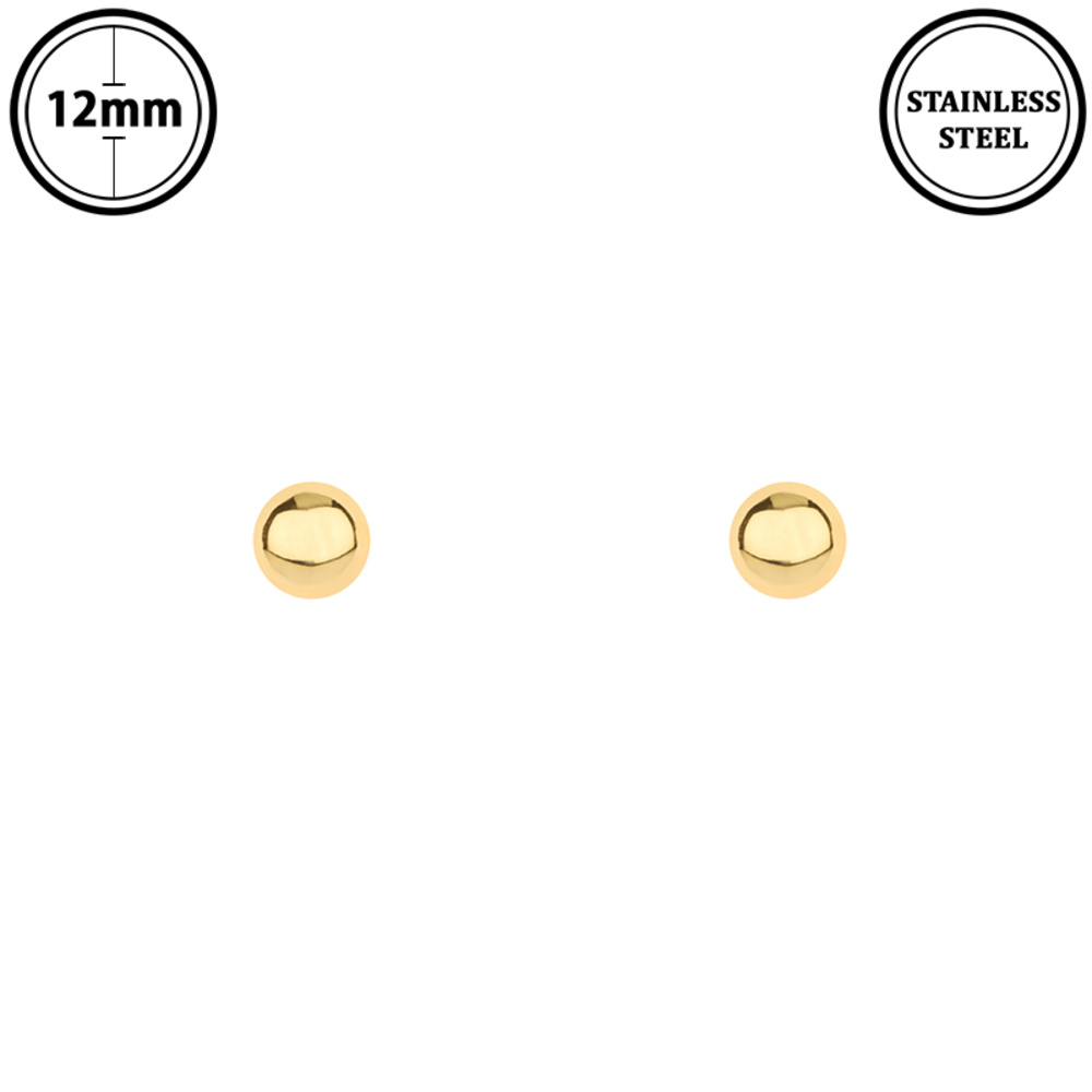 POLISHED SPHERE STUD EARRINGS IN GOLD-TONE STAINLESS STEEL METAL