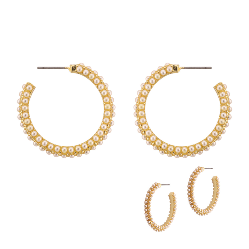 PEARL CAVIAR OPEN HOOP POST EARRINGS IN GOLD-TONE METAL