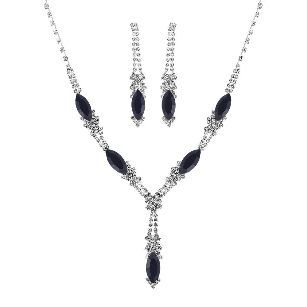 DRESSY RHINESTONE Y-SHAPE NECKLACE EARRING SET
