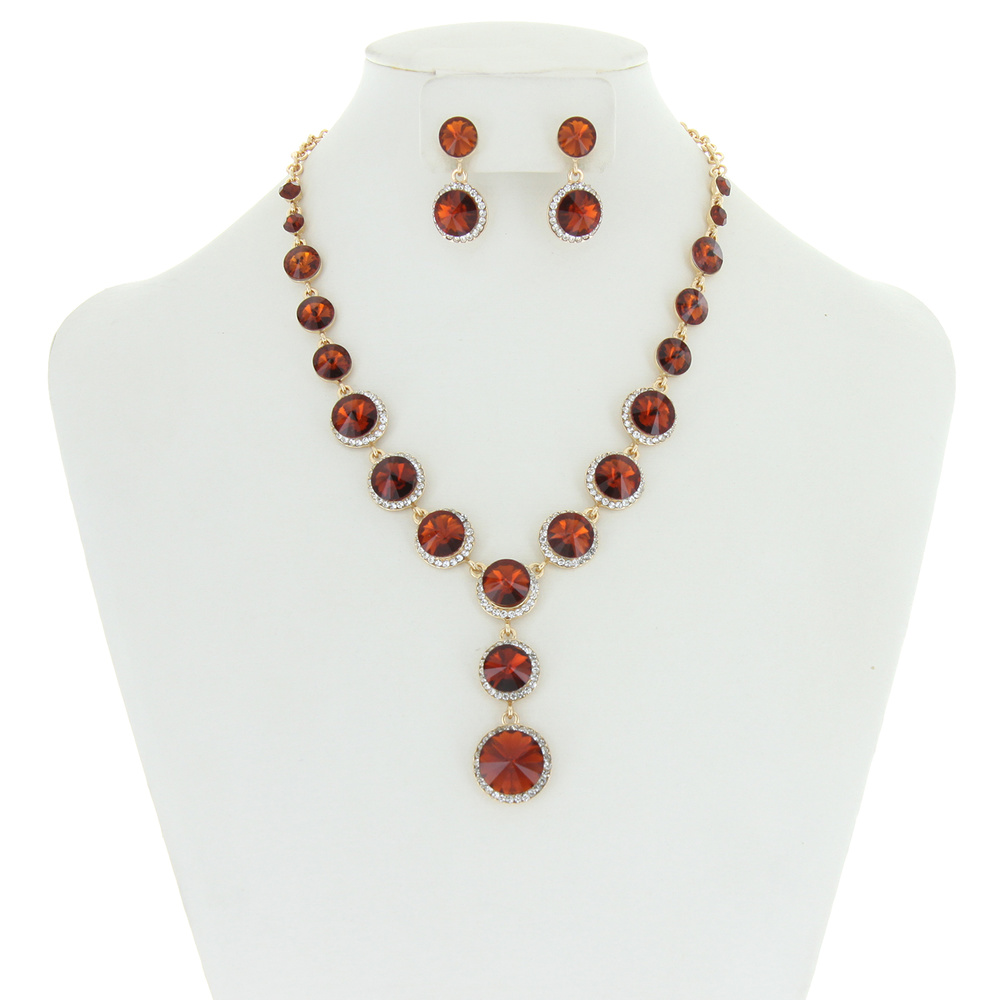 Round Halo Stone Necklace/er Set