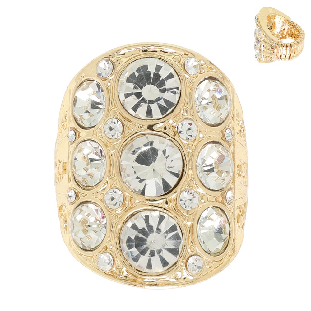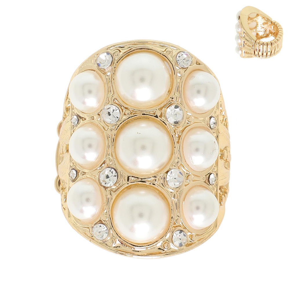 CRYSTAL RHINESTONE AND PEARL ADJUSTABLE ONE SIZE SHORT KNUCKLE STRETCH RING