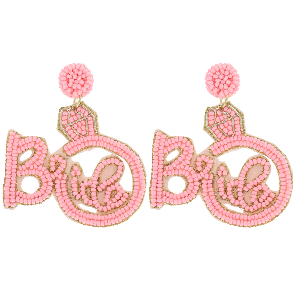 "BRIDE" SEED BEAD HANDMADE BEADWORK DROP EARRINGS